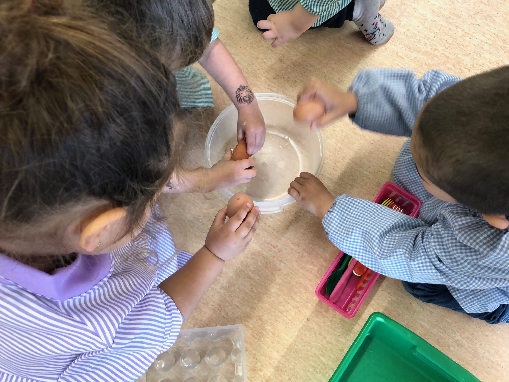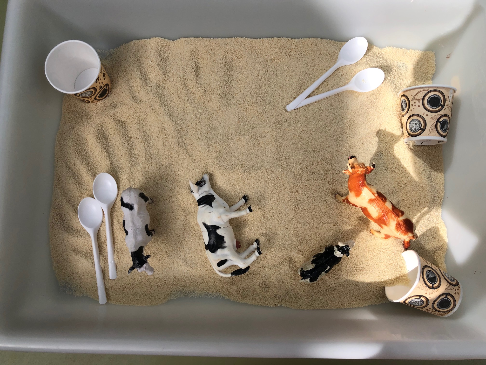 També hem xerrat i experimentat sobre què obtenim de cada animal. Els nens i nenes tenen clar que la llet ve de la vaca i els ous de les gallines, però també xerrem de la carn, la pell i la llana com a elements més importants que ens aporten.