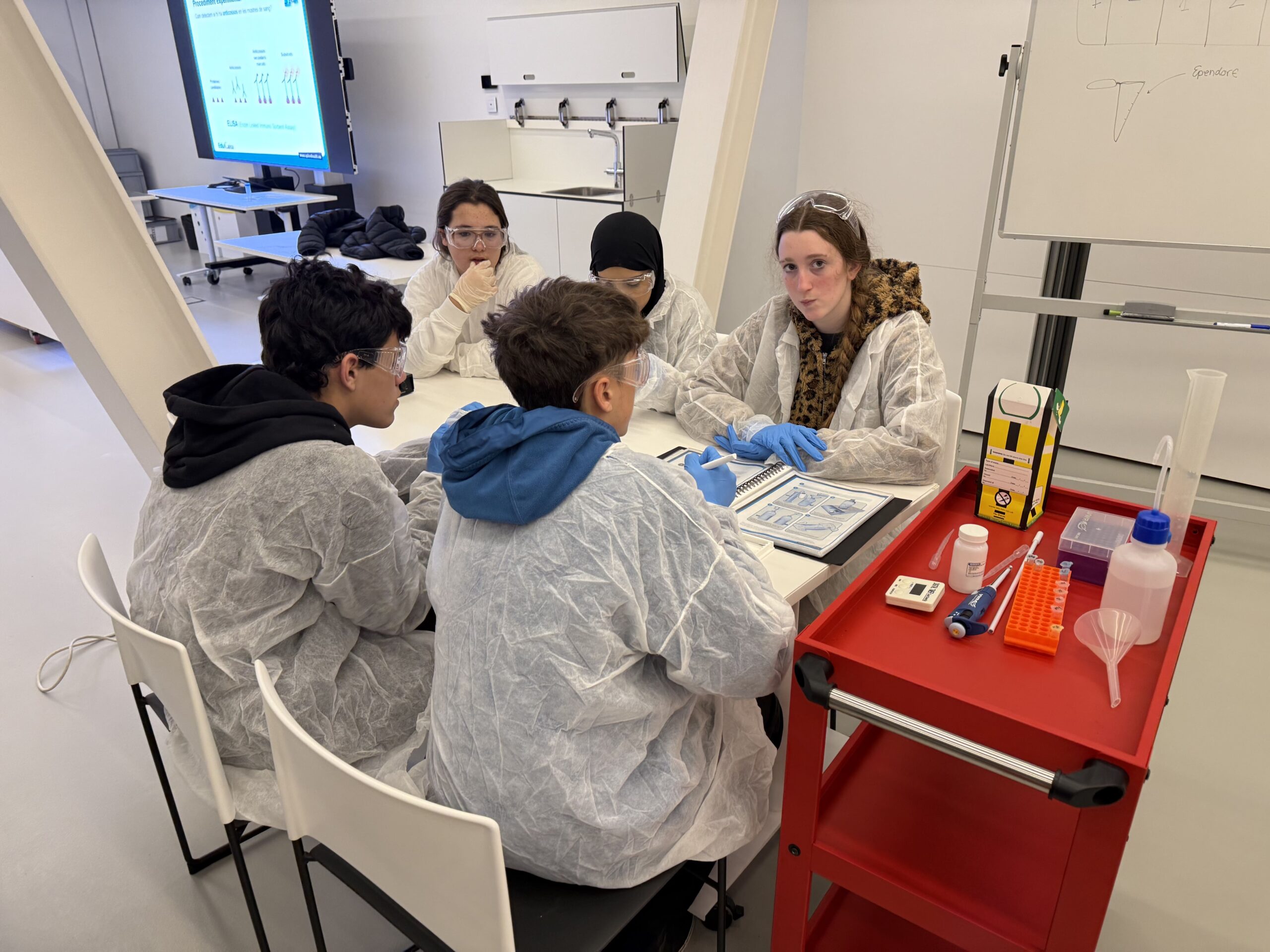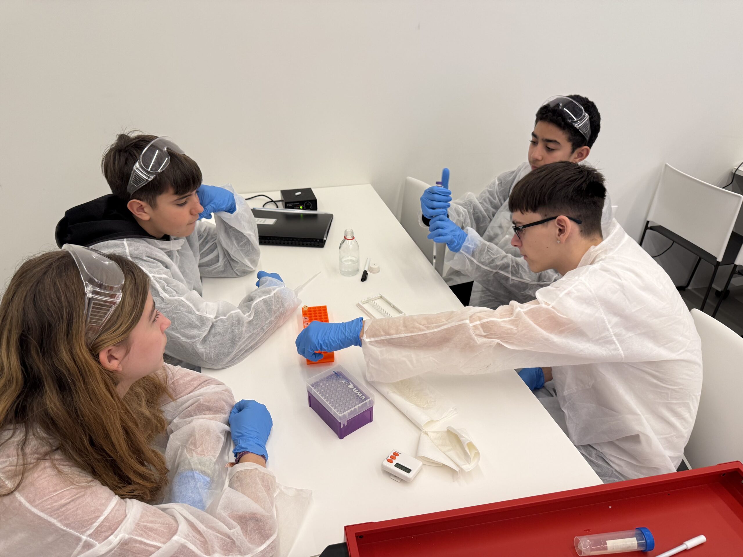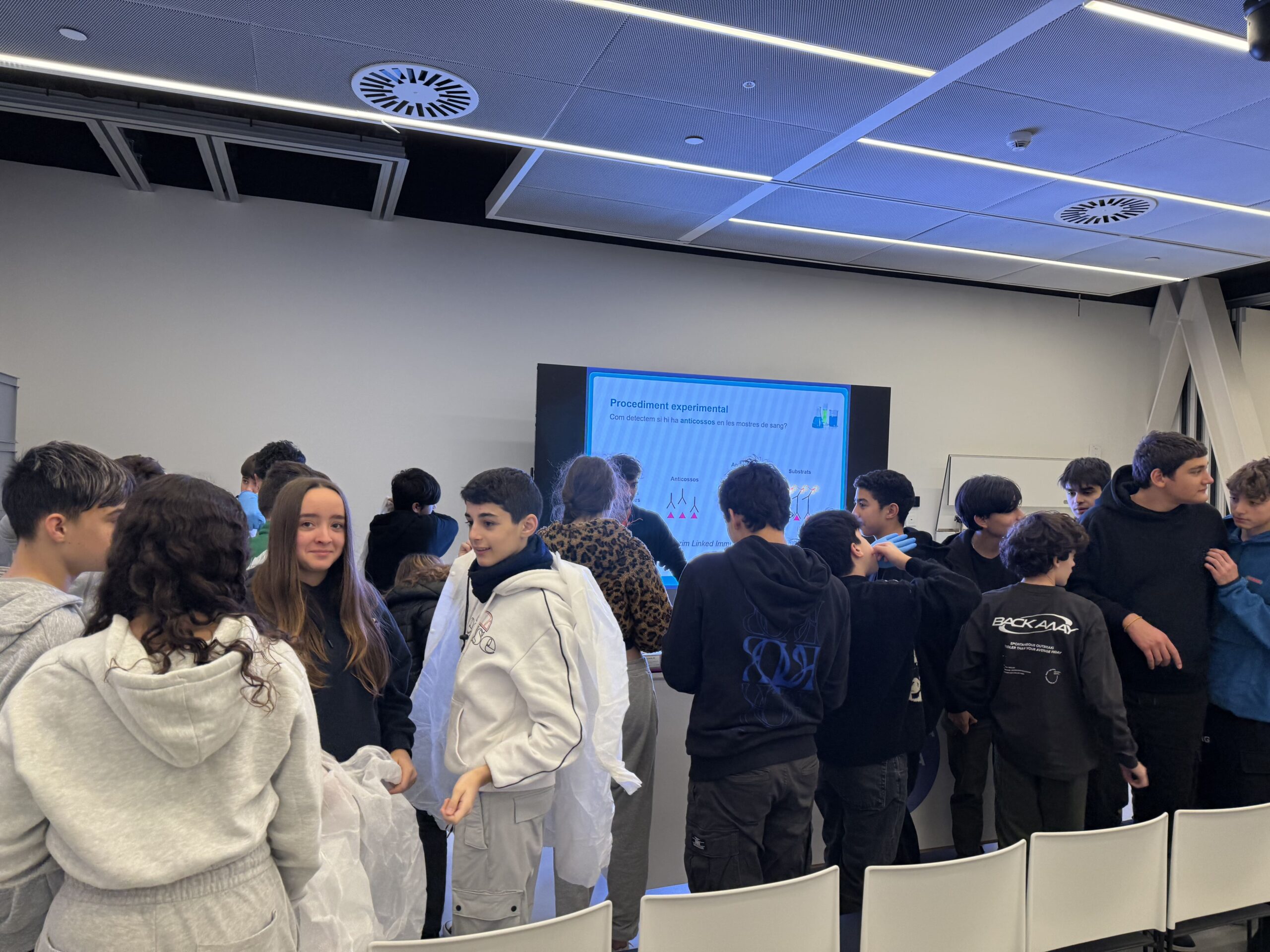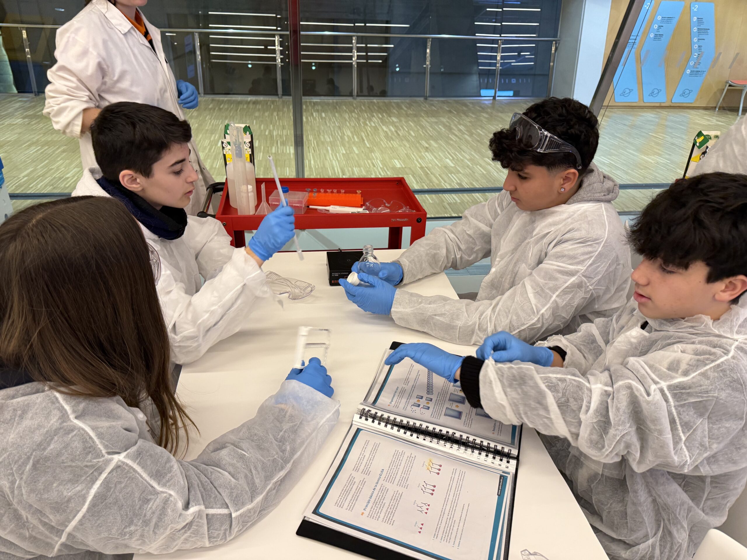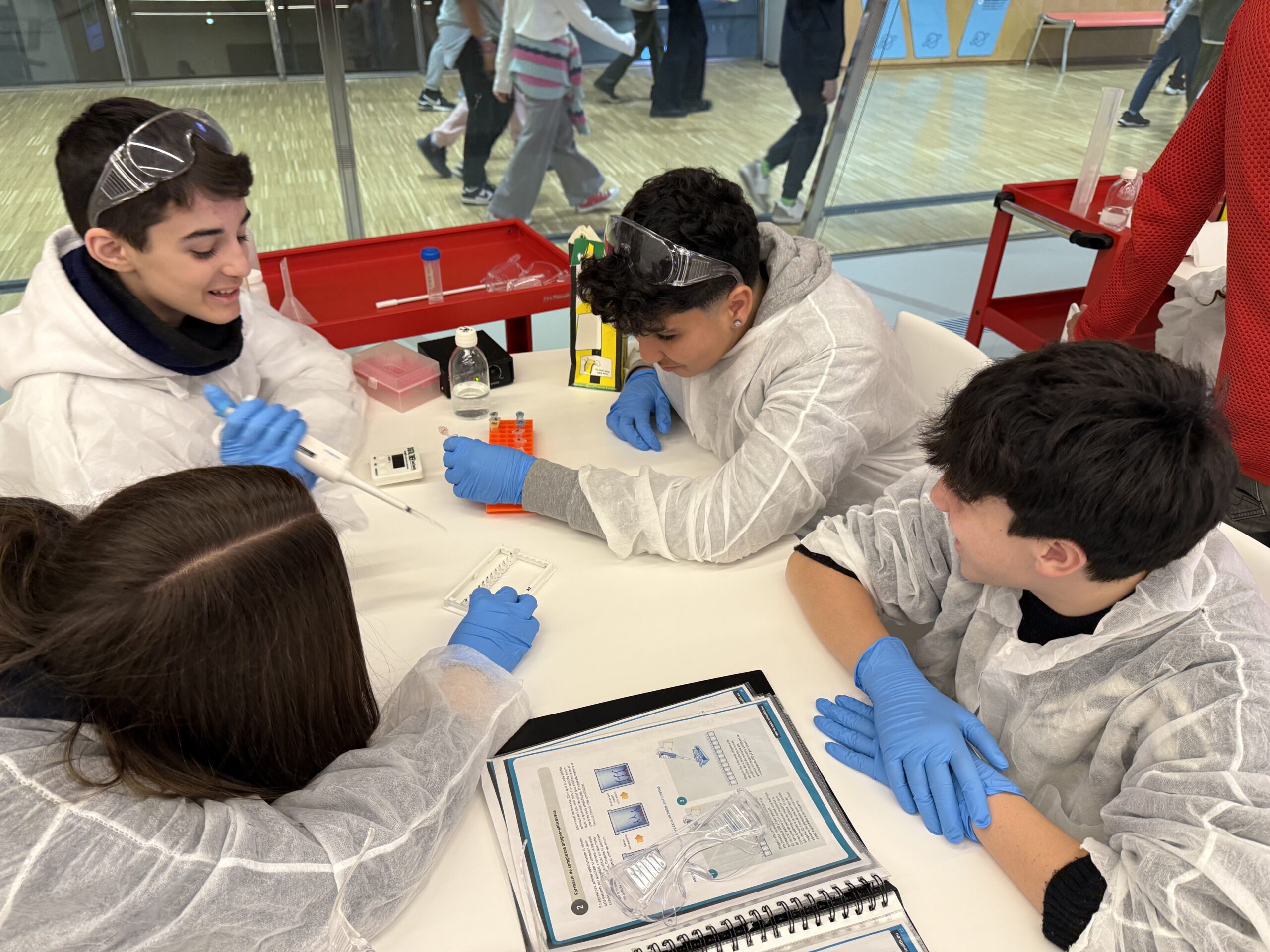 El dijous 9 de gener l’alumnat de l’optativa de Salut Humana de 3r d’ESO va realitzar una sortida al Museu de la Ciència CosmoCaixa, a Barcelona. En la visita van participar en el taller d’investigació de la vacuna per a la Malària, on les i els alumnes van realitzar diferents experiments en laboratori per analitzar algunes opcions de vacuna mitjançant la tècnica ELISA. L’activitat es va completar amb un recorregut per les exposicions temporals i l’exposició permanent del museu.