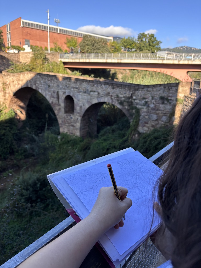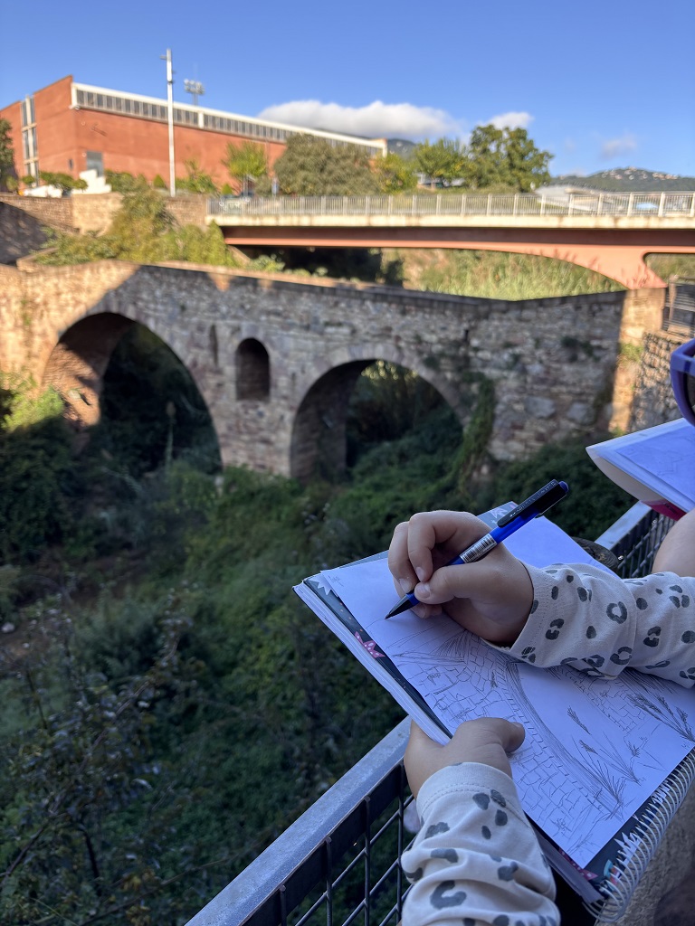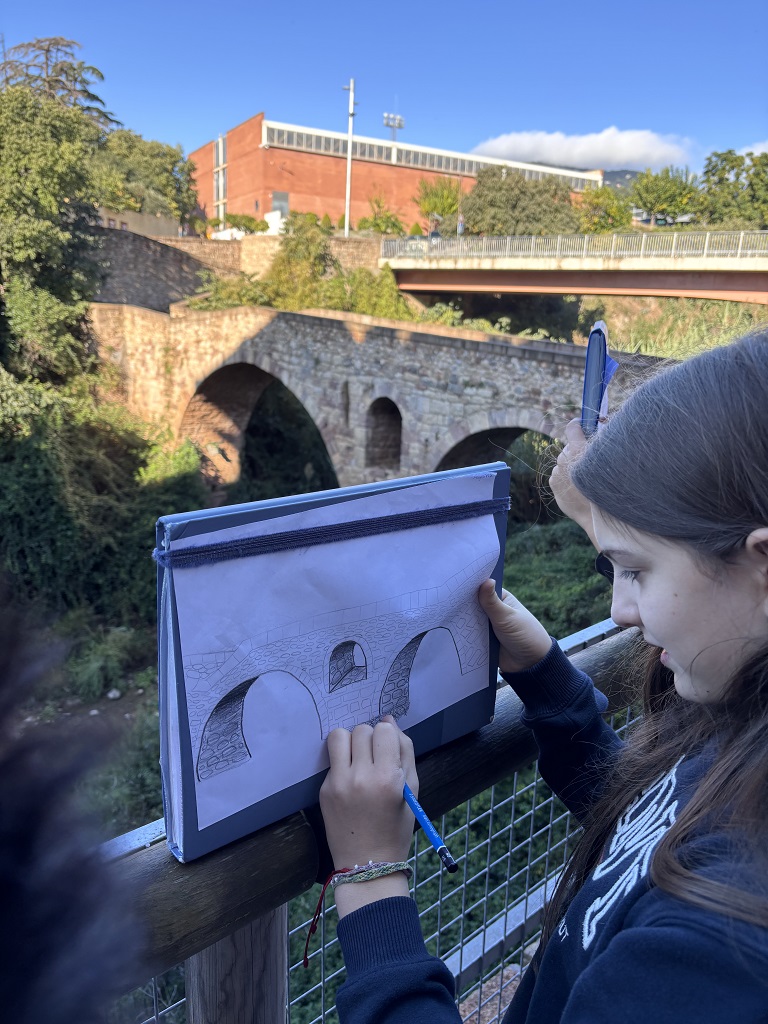 En el marc de la situació d’aprenentatge “Els tresors que amaga Caldes de Montbui”, l’alumnat de 1r d’ESO ha realitzat una sortida per dibuixar el pont romànic, un dels elements patrimonials més emblemàtics del municipi.