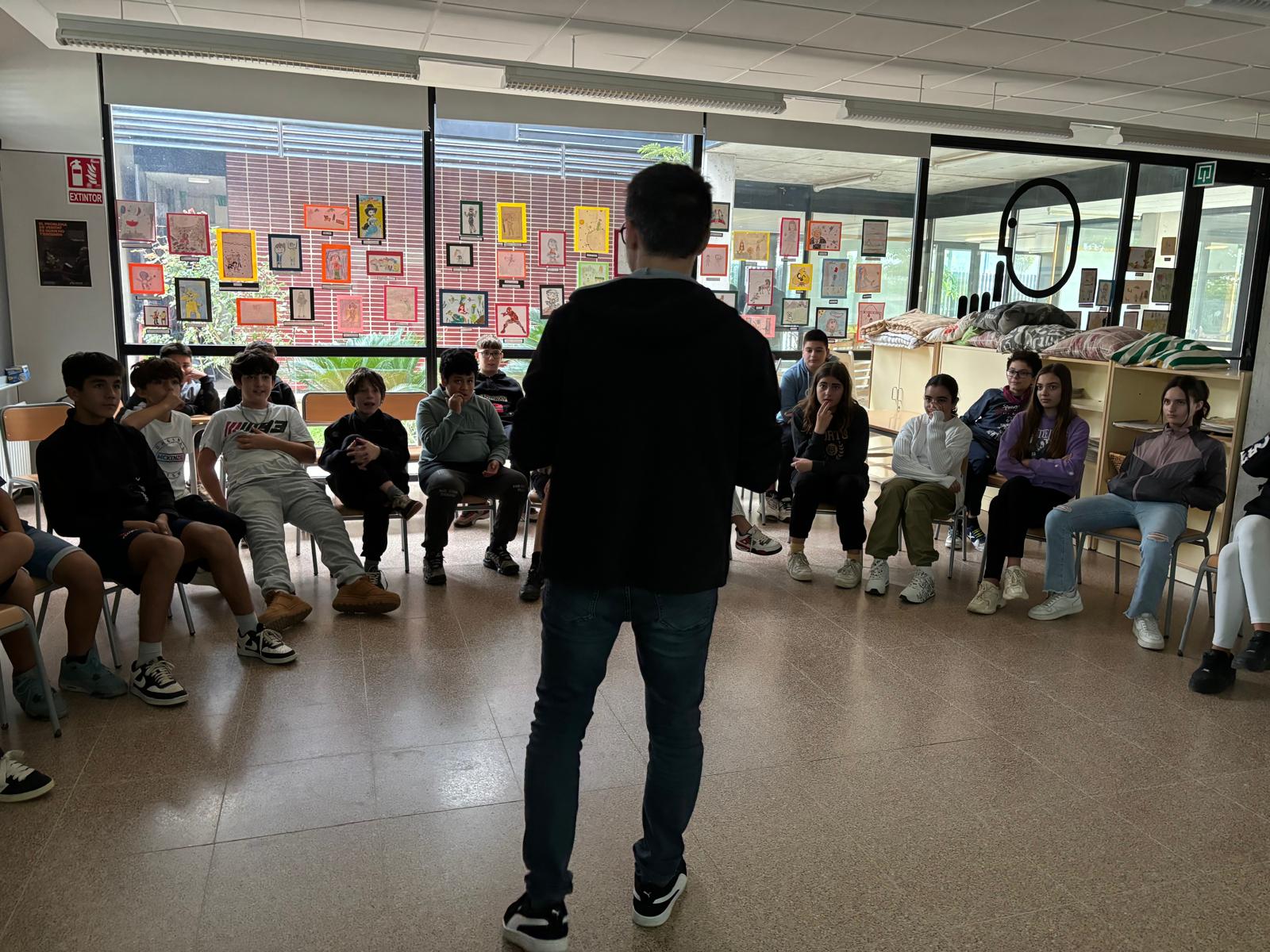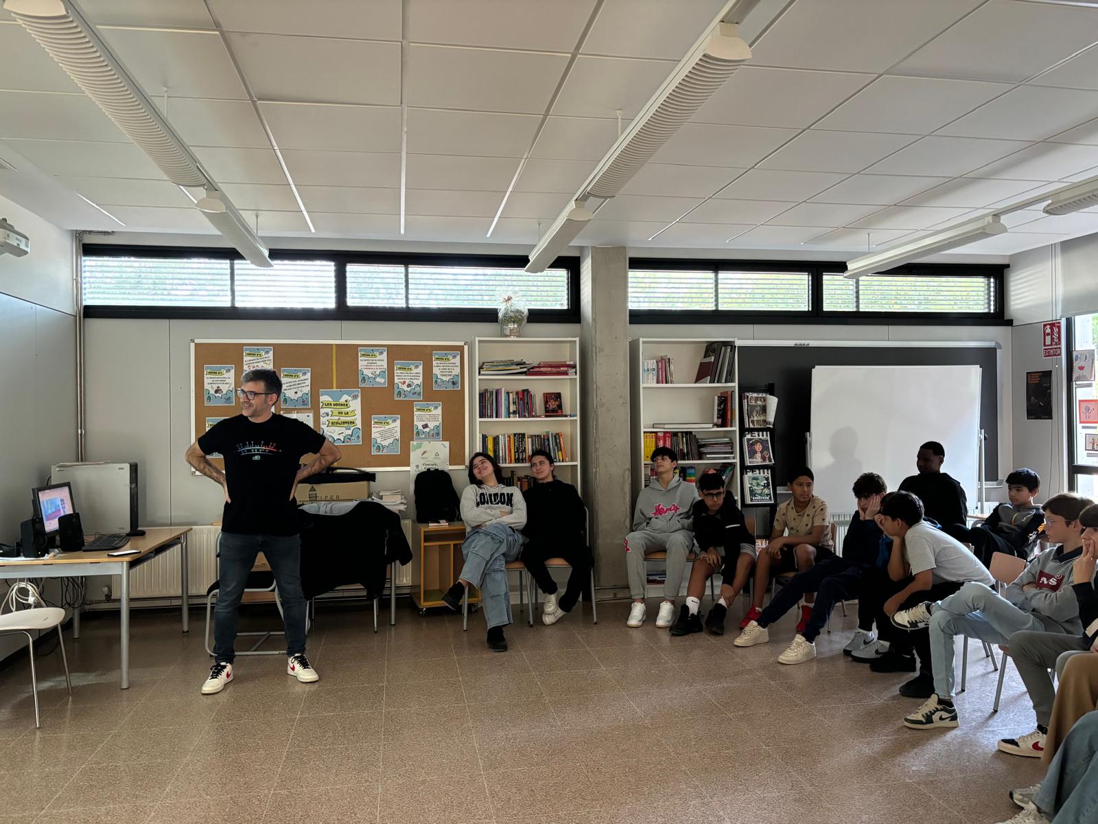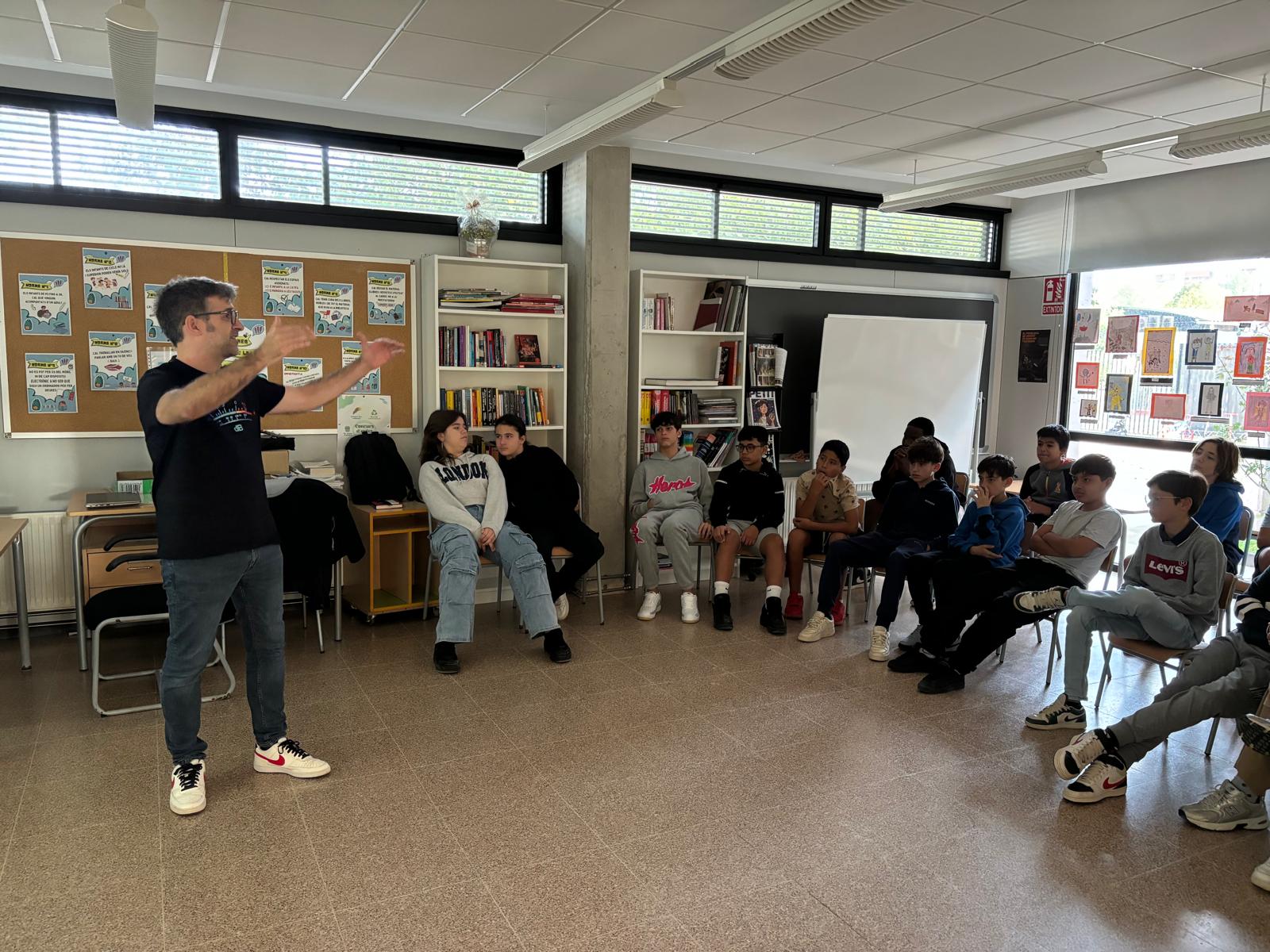 RAMON SOLÉ, EL COMPOSITOR DE LA MÚSICA DE L’ESCALDÀRIUM VISITA L’ALUMNAT DE 1r d’ESO