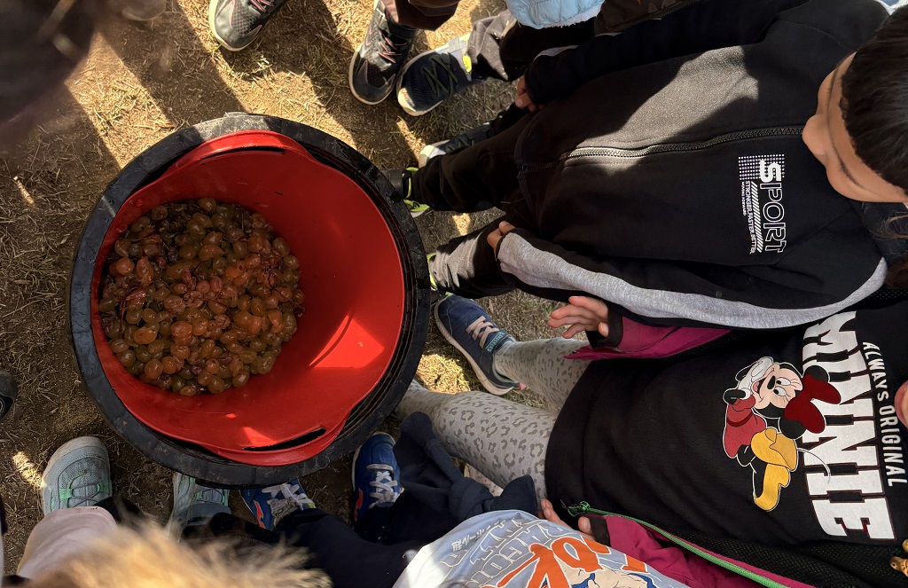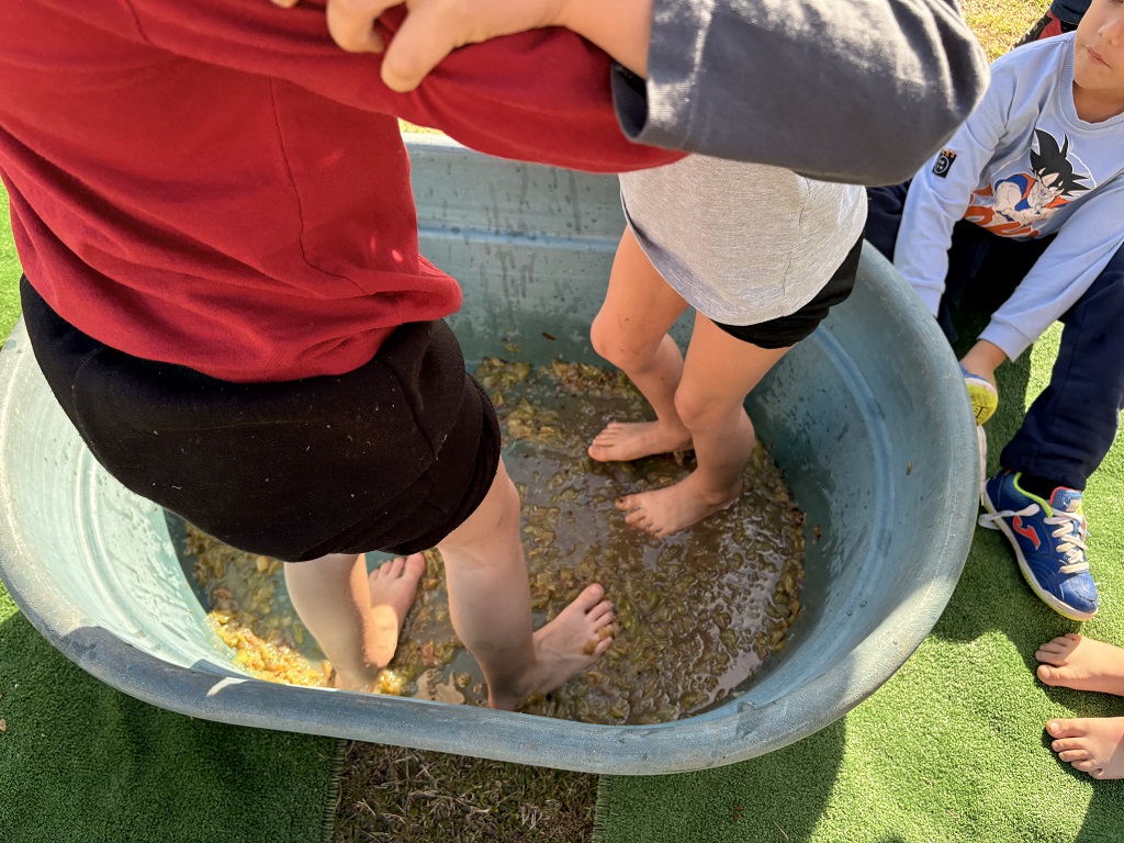 Durant la jornada, els nens i nenes han pogut viure tot el procés de la verema mitjançant activitats vivencials: han xafat el raïm, han observat com s’obté el most i han descobert cada pas que cal seguir fins a convertir el raïm en vi.