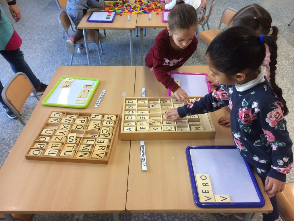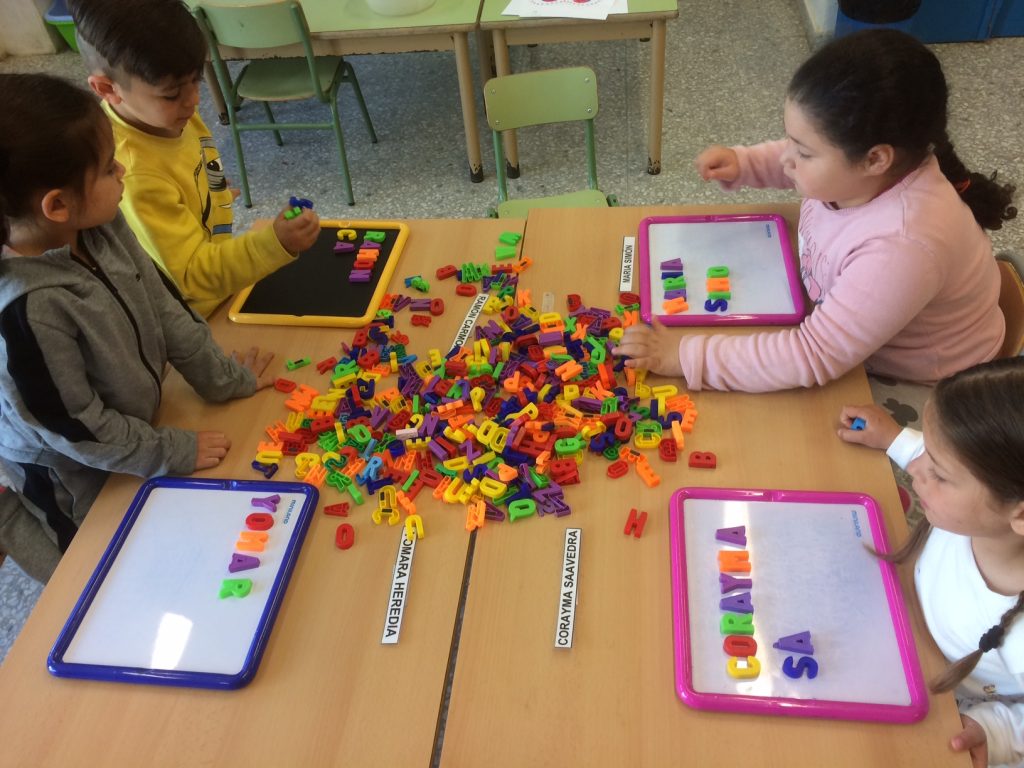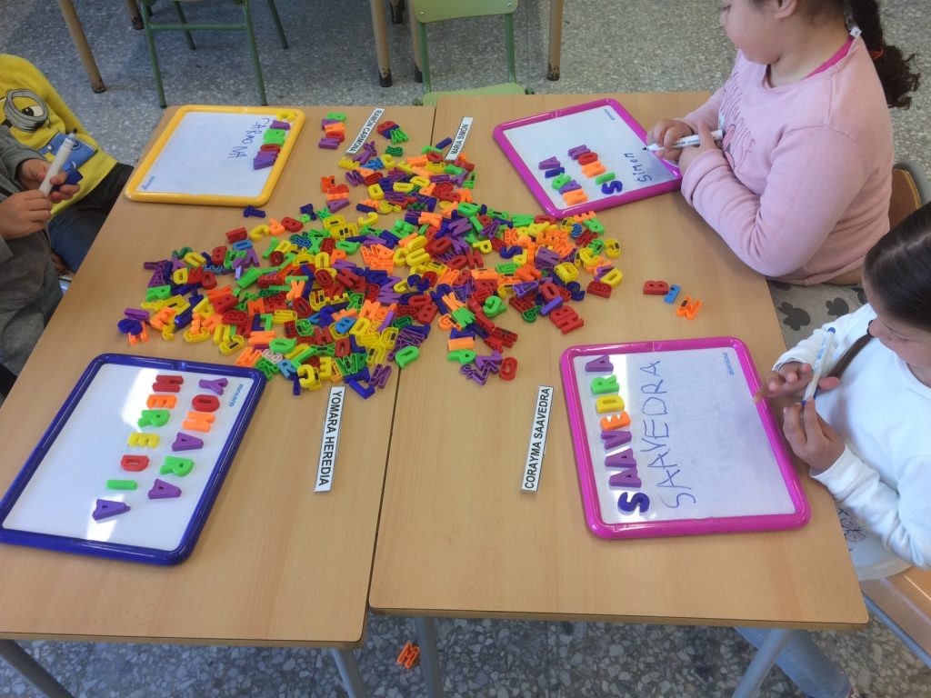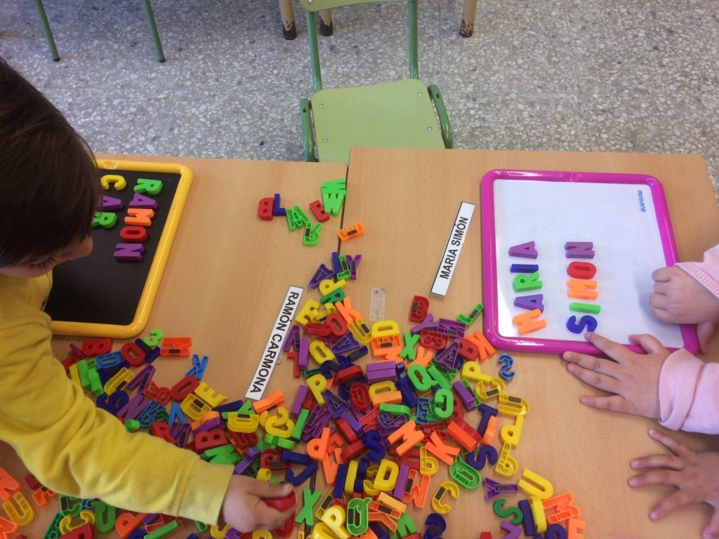 Els alumnes de P5 aprenem a escriure el nostre cognom a través del joc amb les lletres magnètiques i les lletres de fusta.