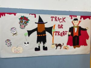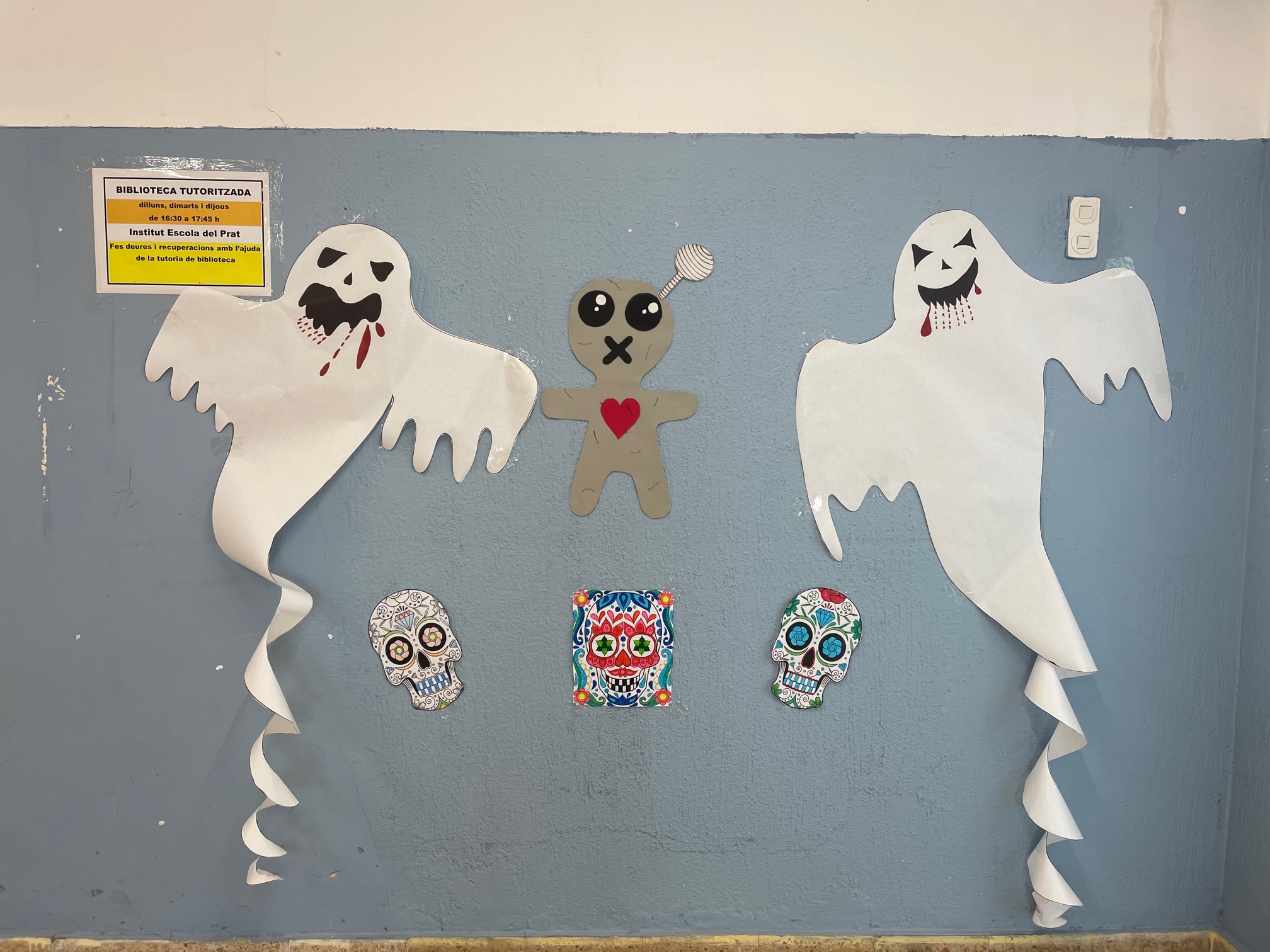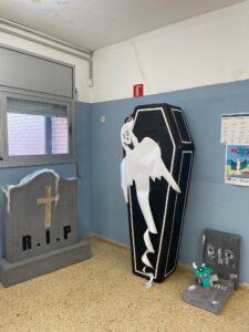 L’alumnat de Secundaria ha participat a la decoració dels passadissos i ha ajudat a preparar el túnel del terror col·laborant amb Primària a fer l’experiència súper terrorífica.