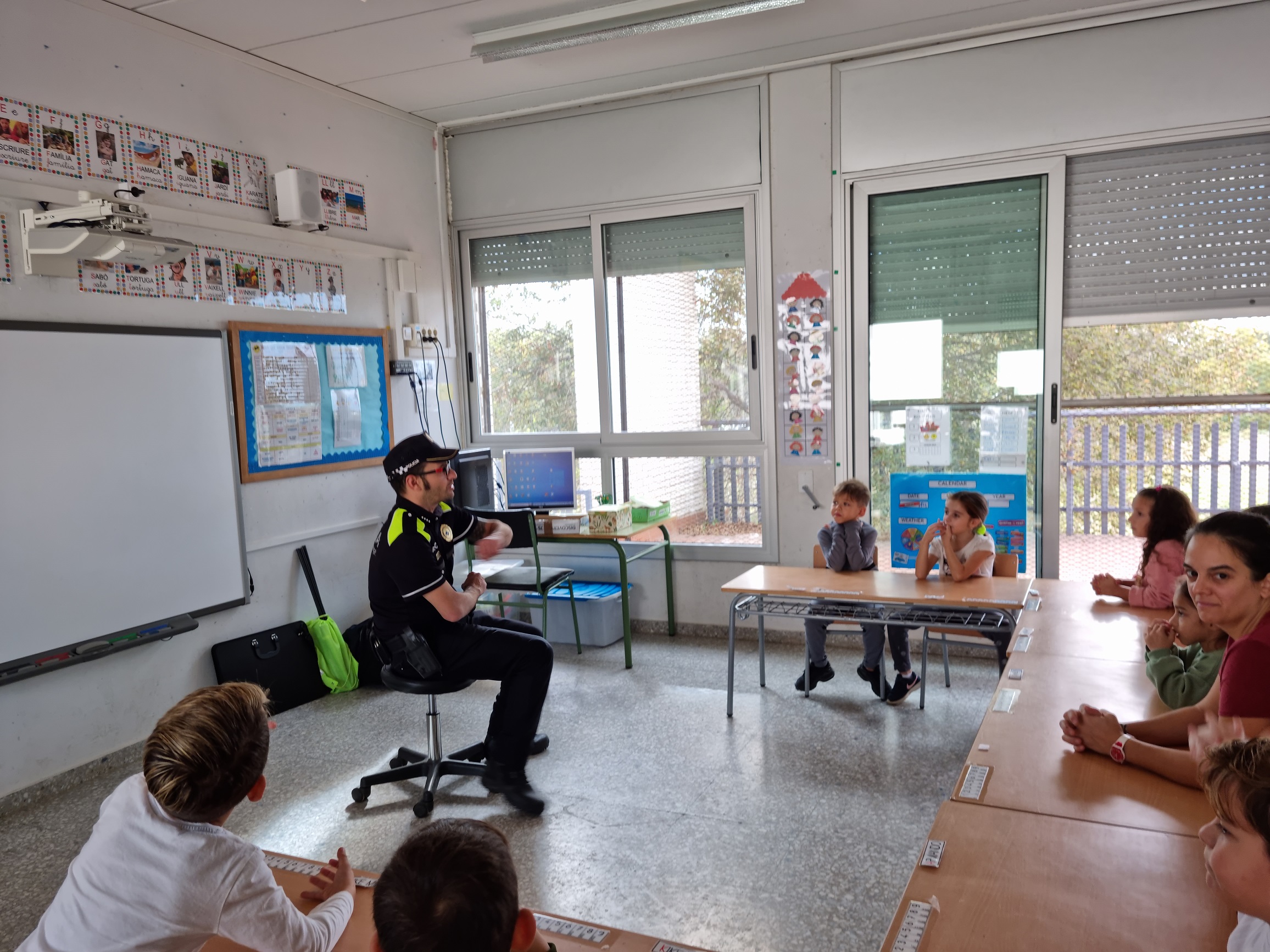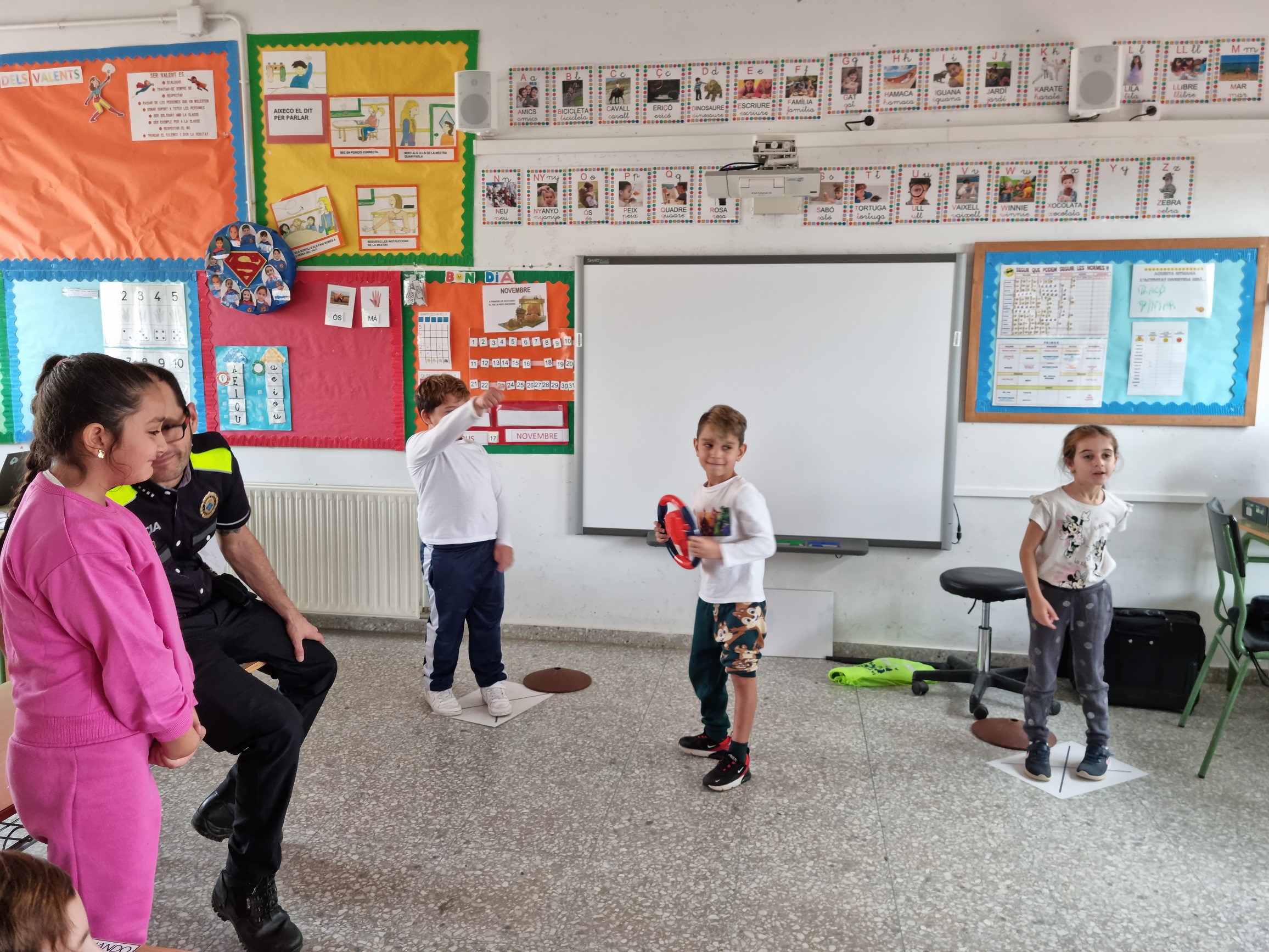 A 1r. hem fet la primera sessió d’educació viària amb el Toni, un policia local molt simpàtic que ens ha recordat com hem de caminar i creuar els carrers. Hem practicat a classe amb un joc molt divertit!!! I encara hem d’aprendre més perquè vindrà un altre dia.