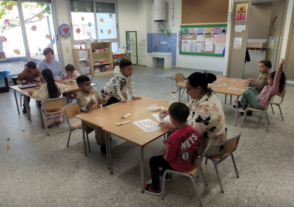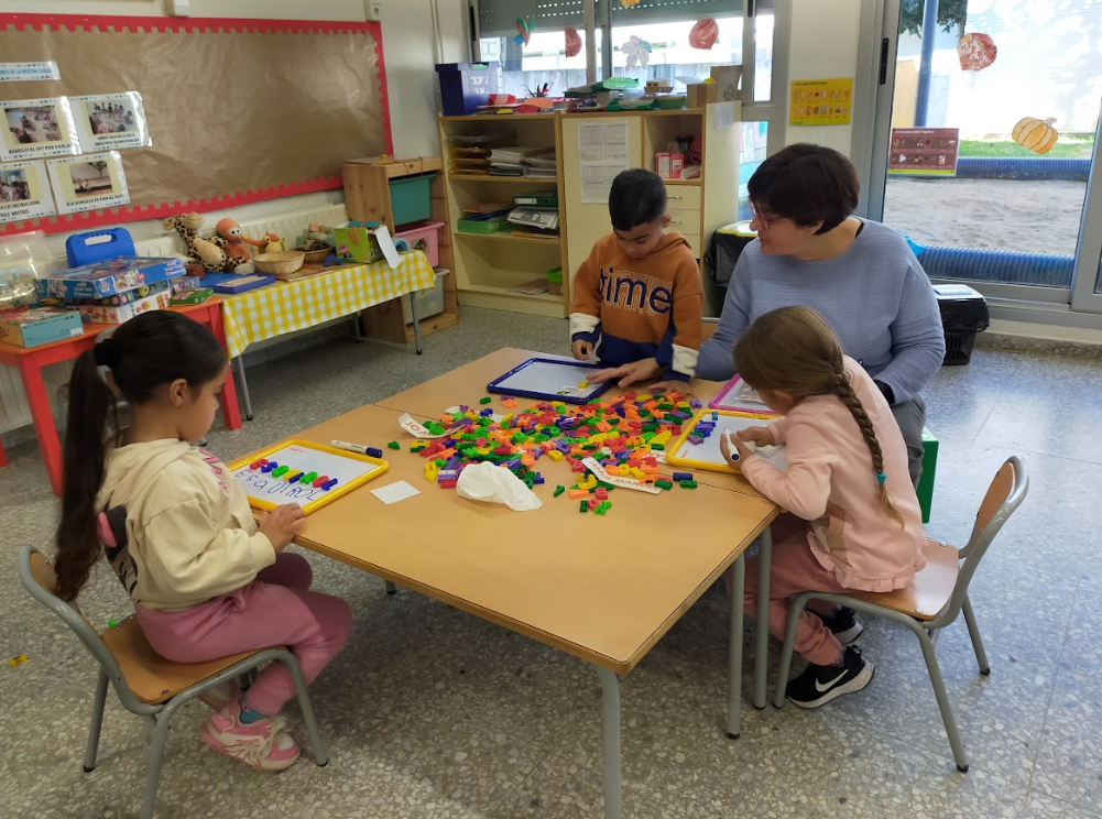 A la classe dels Cocodrils es duen a terme Grups Interactius tres dies a la setmana. Aquest divendres es va comptar amb una visita molt especial: l’Amparo, mare d’un infant del grup, va participar en les dinàmiques de llengua i matemàtiques.
