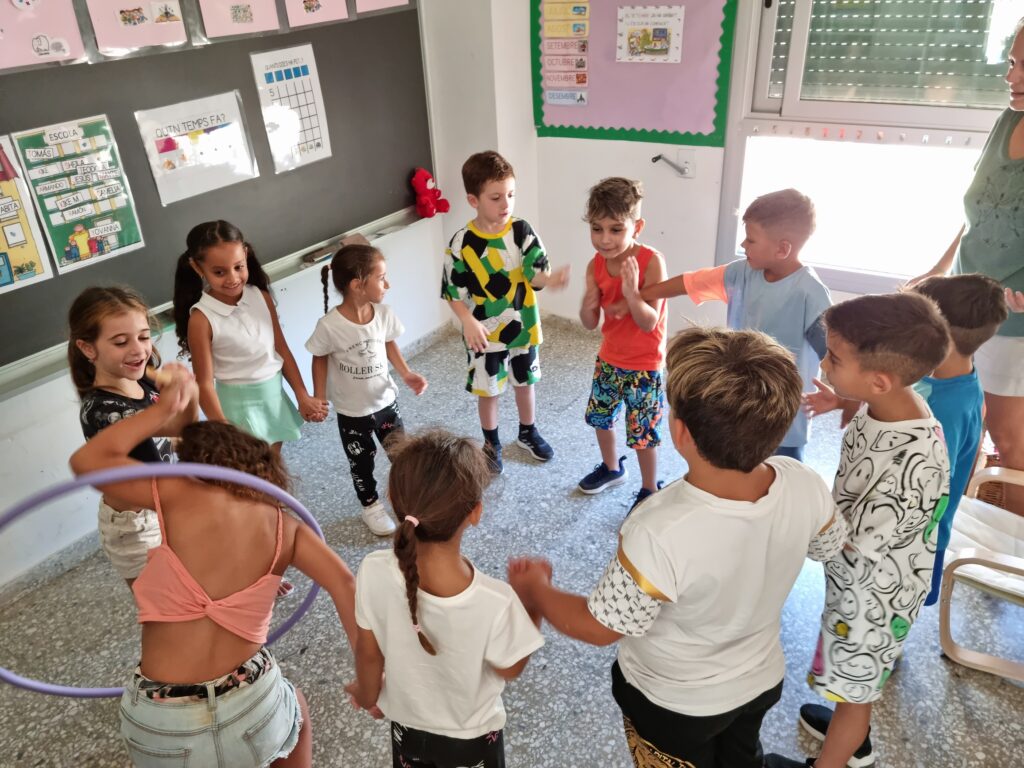 FEM JOCS DE COHESIÓ A L’AULA… HEM DE PASSAR-NOS L’ARO EN UN CERCLE I AMB LES MANS AGAFADES!!!! TOT UN REPTE QUE HEM ACONSEGUIT A LA PRIMERA…