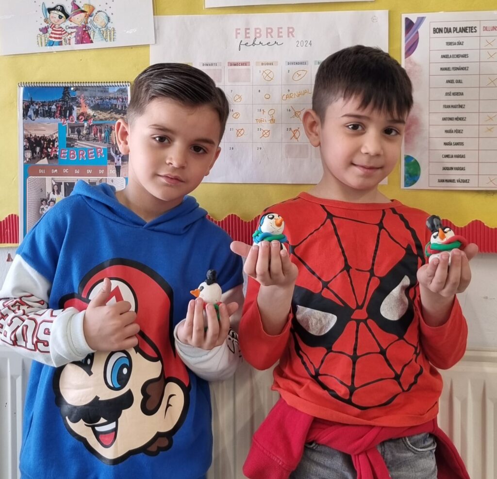 Ninots de neu amb plastilina Sergio27/02/24 Els infants de primer de l’Institut Escola del Prat van fer ninots de neu amb plastilina. Vam gaudir molt de l’activitat i alguns d’ells van fer la família sencera!!