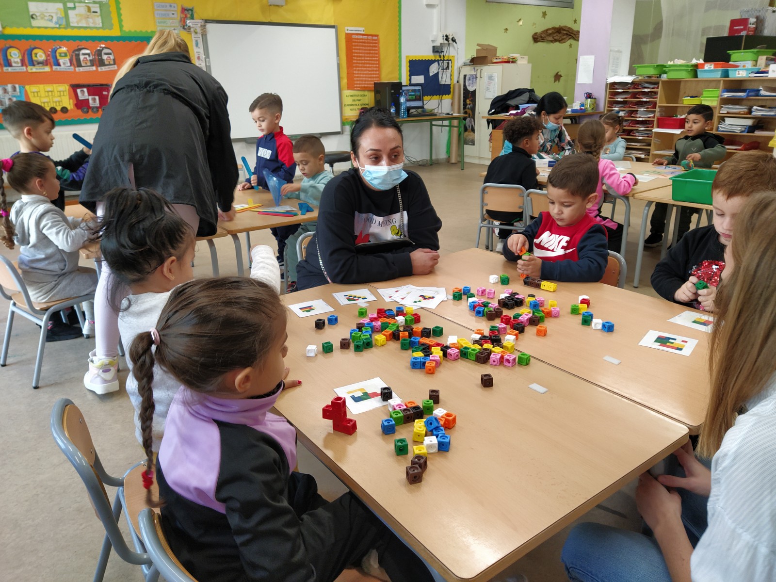 Grups Interactius Guiomar20/12/21 Aquest curs algunes mares dels nens i nenes de la classe dels Micos, vénen de voluntàries per fer els grups interactius. Es genera un bon ambient de treball i els infants estan molt contents.