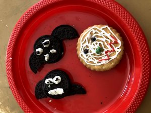 D’ altra banda, hem treballat les tradicions d’aquesta festa, com la de decorar les carabasses amb cares terrorífiques i espelmes i també hem fet dolços com els que ens podrien donar si haguéssim fet el “Treat or Trick”.
