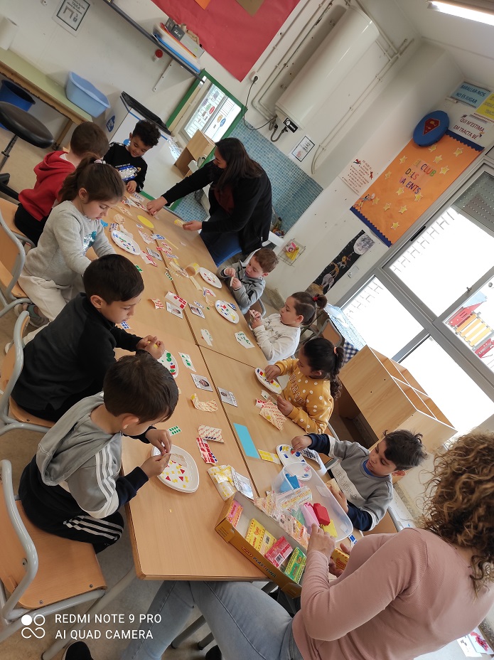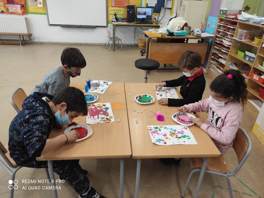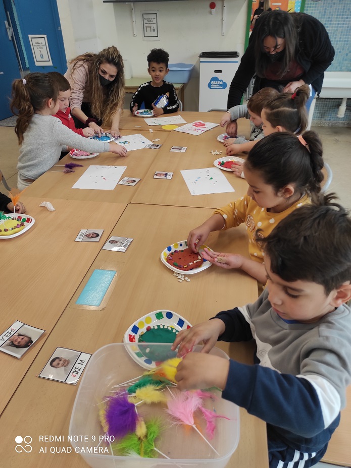Aquest curs la mona que hem fet a infantil i primer ha sigut ben original. Els nens i nenes han decorat els plats amb gomets, amb plastilina de colors han fet la mona i l’han decorat amb pedretes pintades i plomes de colors. La sorpresa final va ser l’ou de xocolata que amb molta il·lusió van poder endur-se a casa.
