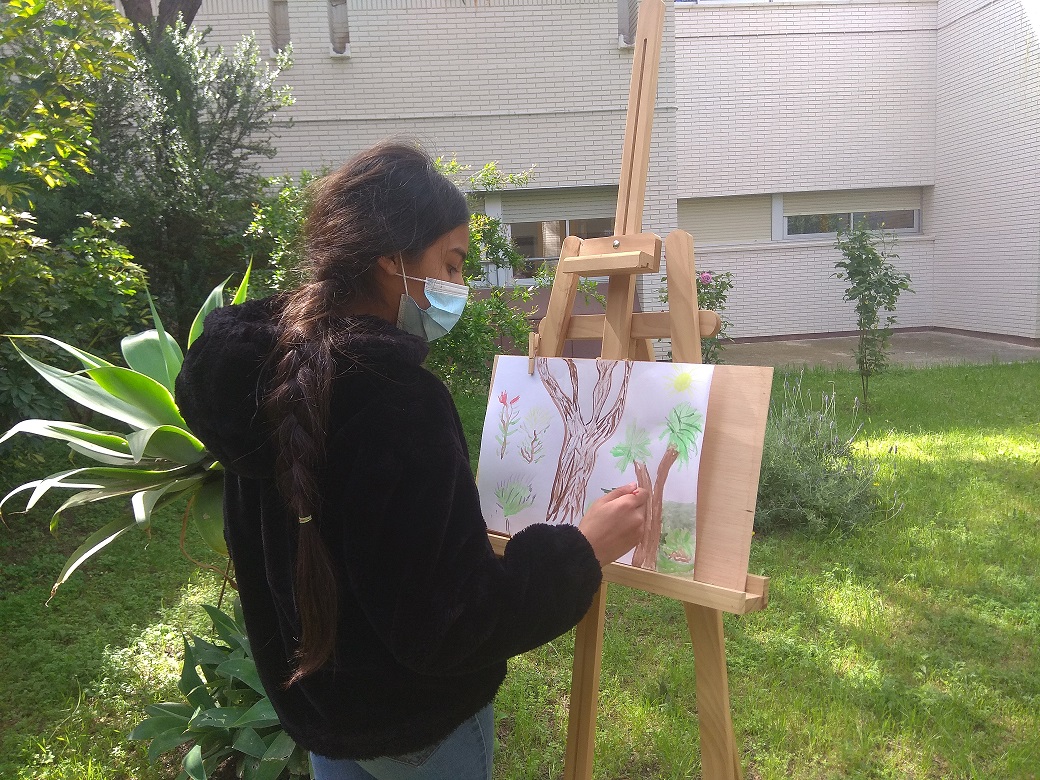 L’última activitat ha estat pintura amb aquarel·les a l’aire lliure. Cada alumne va triar un espai exterior de l’escola, va agafar un cavallet, les pintures, un pinzell i un full en blanc… i endavant!! Fem enveja i tot, de tan relaxats i concentrats que se’ns veu amb l’activitat!!!