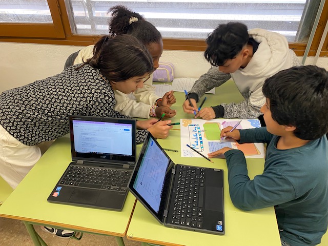 Les nenes i els nens de cinquè, a més a més, participem al projecte Educatiu del Pregó dels Infants a les festes de Santa Eulàlia. Aquest any, l’objectiu és fer difusió dels Drets dels Infants.
