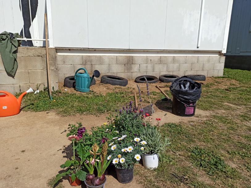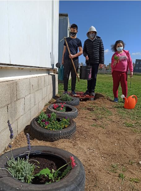 Els alumnes de l’aula d’acollida aprenen les parts de les plantes, alhora que ho posen en pràctica. Aprofitem també per posar una mica de color al nostre pati!