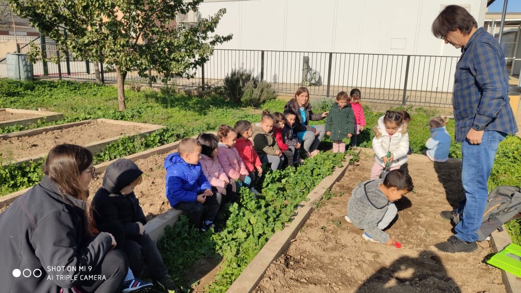 Avui ha vingut el senyor Xavier Vizcaino i ens ha ensenyat com fer una cargolera. Hem anat a l’hort a buscar cargols, terra, palets i fulles. Després hem decidit que a cada cargol li posarem el nom d’un color. Ja tenim el cargol vermell, que li hem fet un puntet amb pintura vermella. Si trobem cargols els podrem portar a l’escola i posar-los a la cargolera.