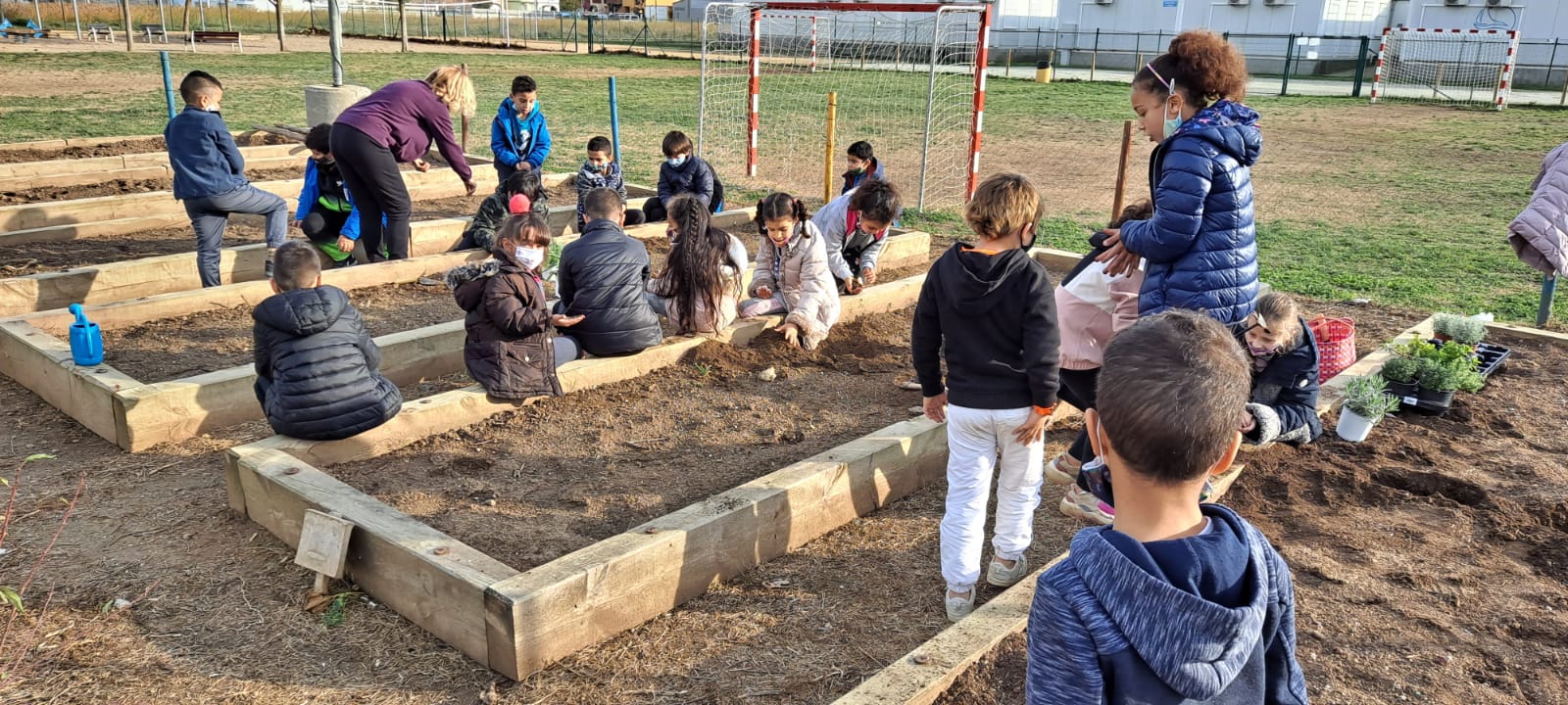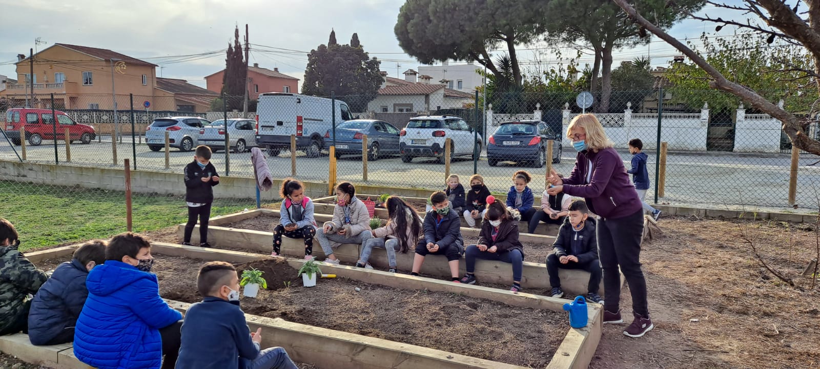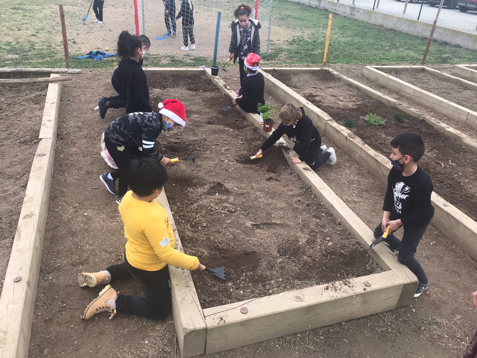Els nens i nenes de 2n van anar a l’hort a plantar herbes aromàtiques o remeieres: Farigola, Romaní, Espígol Menta i Santolina. Tal com el seu nom indica, tenen diferents usos: fer “colònies”, locions curatives, per a condimentar i per a fer infusions. Van plantar-les al mig de les parcel·les perquè també tenen una funció d’ajuda a la terra, les verdures i hortalisses que es planten a l’hort.