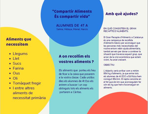 Aquest dilluns 14 iniciem a l’Institut-Escola la Racapte d’aliments dins el projecte dels Kilians d’Empuriabrava, un projecte impulsat pels alumnes de 4t d’ESO, convertint els quilòmetres recorreguts pels alumnes amb quilos d’aliments. Tots els aliments que recollim a l’Institut-Escola seran donats a Càrites de Castelló d’Empúries com a part de la campanya del Gran Recapte d’Aliments. Es podran portar aliments fins el divendres 18.
