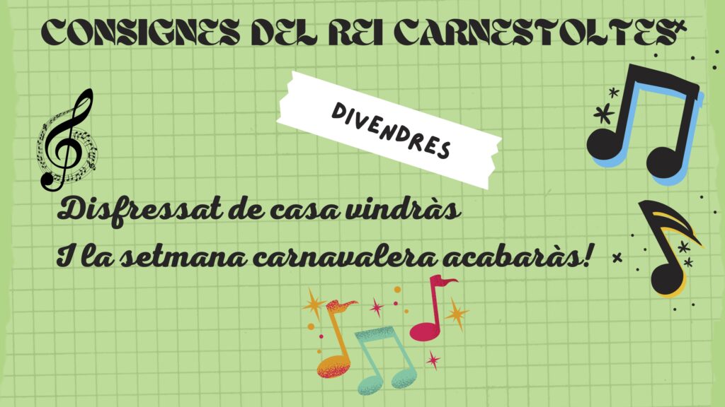 Carnavaaaaaal, Carnavaaaaaal!!!!! Feu un comentari / Per ADMIN / 01/03/2022 / carnaval EDUCACIÓ INFANTIL EDUCACIÓ PRIMÀRIA General Portada Ha arribat el rei Carnestoltes a l’escola i amb ell les seves consignes boges per tota la setmana!!! A continuació algunes fotografies de l’alumnat complint-les: