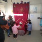 El Tió és un tronc màgic que arriba al pati. Els primers dies l’alimentem amb peles de fruites per després picar-lo amb un pal perquè ens cagui regals.