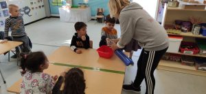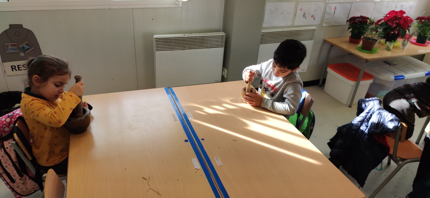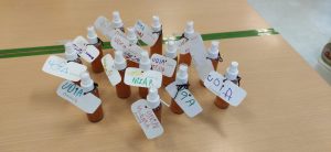 Aquest dijous ha vingut la Montse ha fer una activitat amb nosaltres “aigua de colònia”. Hem necessitat tan sols 3 ingredients: planta d’espígol (també conegut com lavanda), aigua i alcohol. Primer hem anat traient les flors, les hem olorat, les hem picat amb un morter i al final les hem ajuntat totes a dins d’una ampolla. Tot seguit hem emplenat l’ampolla d’aigua fins a dalt i la Montse ha afegit una mica de alcohol. Hem d’anar remenant cada dia la colònia i la setmana vinent ens emportarem una miqueta d’aquesta colònia a casa!