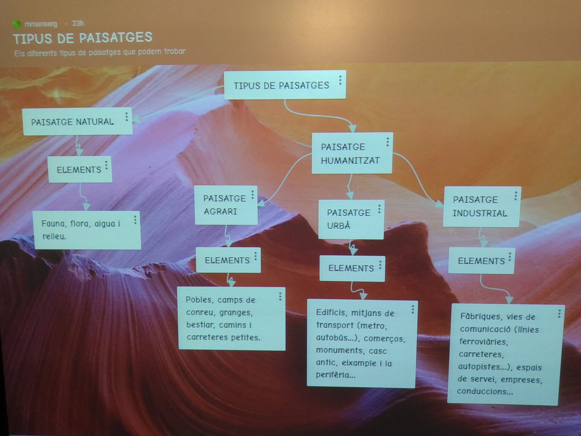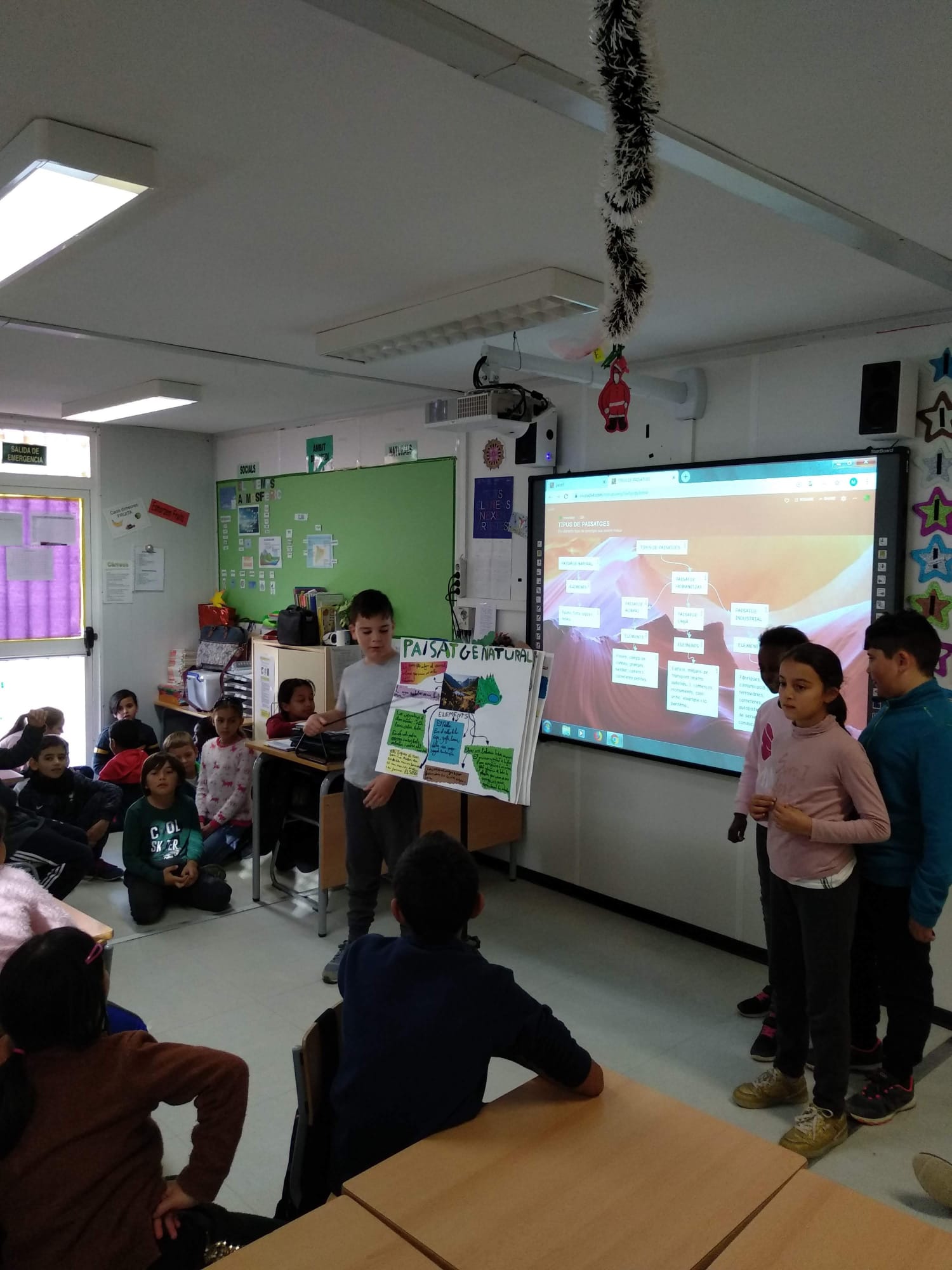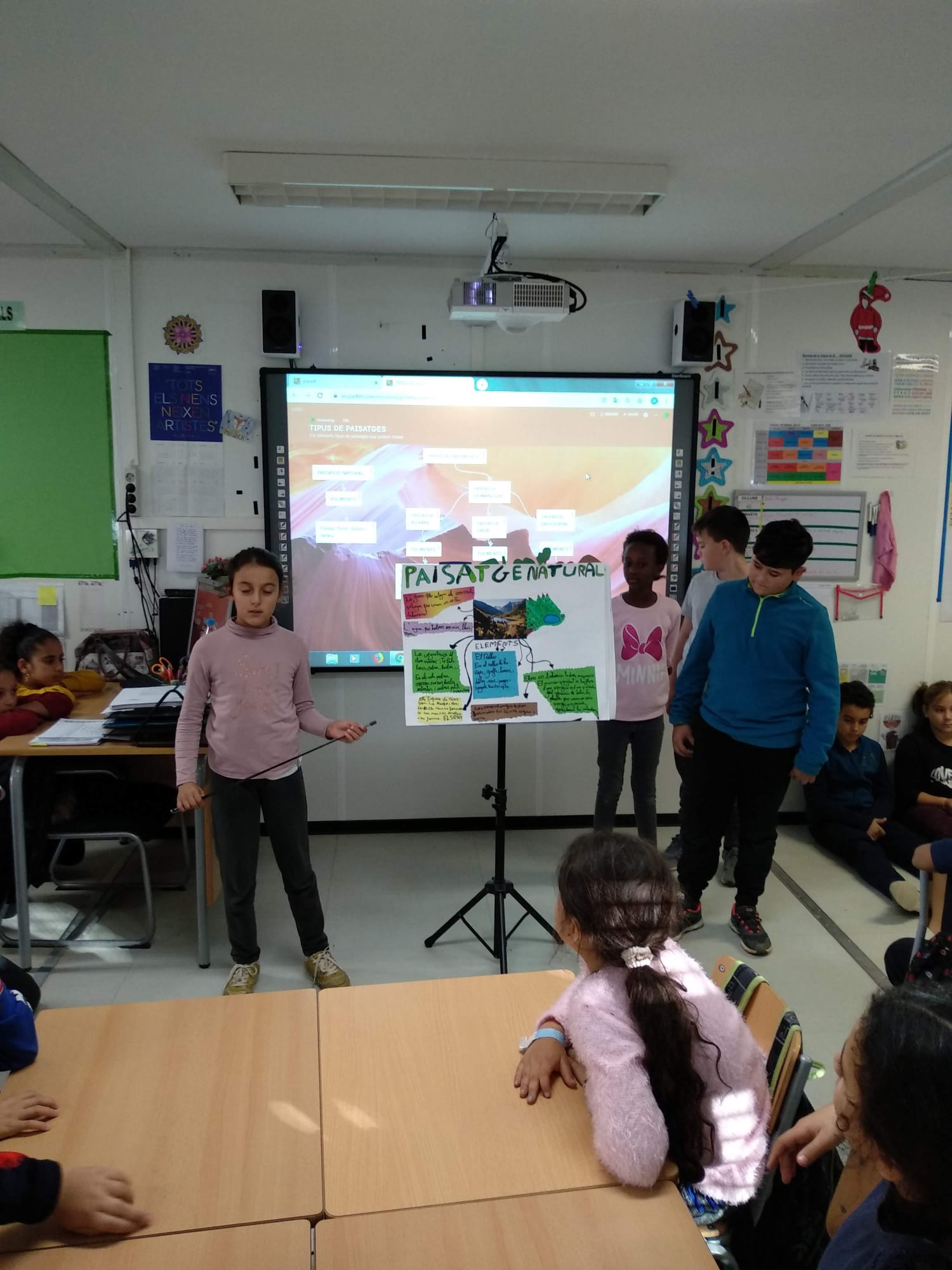 Durant aquest trimestre hem realitzat dos projectes que estan força relacionats: el temps atmosfèric i els tipus de paisatges. Del primer, vam fer un aparell meteorològic casolà i, amb alguns d’ells, farem una estació meteorològica per l’escola. Del segon, vam preparar per grups un mural de cada tipus de paisatge i un mapa conceptual digital. Un cop acabada la feina, per poder palpar de prop allò que hem après entre quatre parets, hem realitzat una sortida per observar el paisatge del nostre entorn més proper, la fauna, la flora i els aspectes més importants del clima mediterrani. Per últim, hem exposat tot el que hem après als companys i companyes de la classe de 3r. Ens sentim orgullosos per la feina feta!