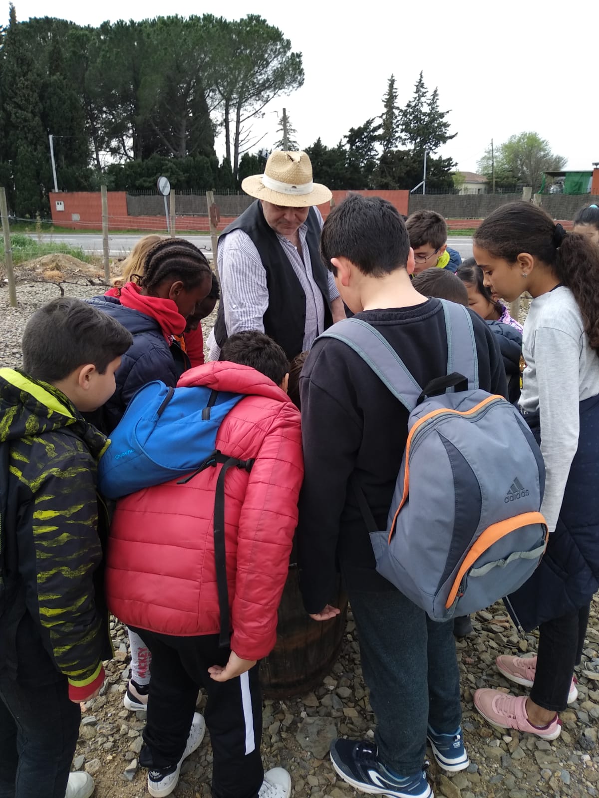 El dimarts 25 de febrer de 2020, l’alumnat de cicle mitjà va anar d’excursió a la Cooperativa de Garriguella, al celler Gerisena. Van poder gaudir d’una visita teatralitzada a càrrec de dos personatges: en Valentí, un vell vinyataire rondinaire; i l’Agustí, un enòleg una mica cregut. Van treballar els oficis, els valors de la tradició i la innovació i la cooperació (Treball en equip).