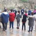 Vam entrar dins el monestir. Ens vam dividir en tres grups. Els grups eren els monjos, els pagesos i els cavallers. Vam fer amb les monitores un joc de rol sobre l’Edat Mitjana