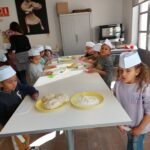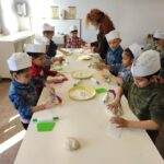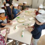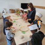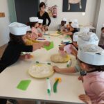 A la biblioteca van poder gaudir de diferents contes explicats per la Roser i a “La Farinera” van realitzar un taller de realització de pa. Cada alumne va poder fer el seu panet, el van coure i se’l van endur a casa. L’endemà a l’escola van esmorzar pa, que els van donar a “la Farinera”, amb xocolata.