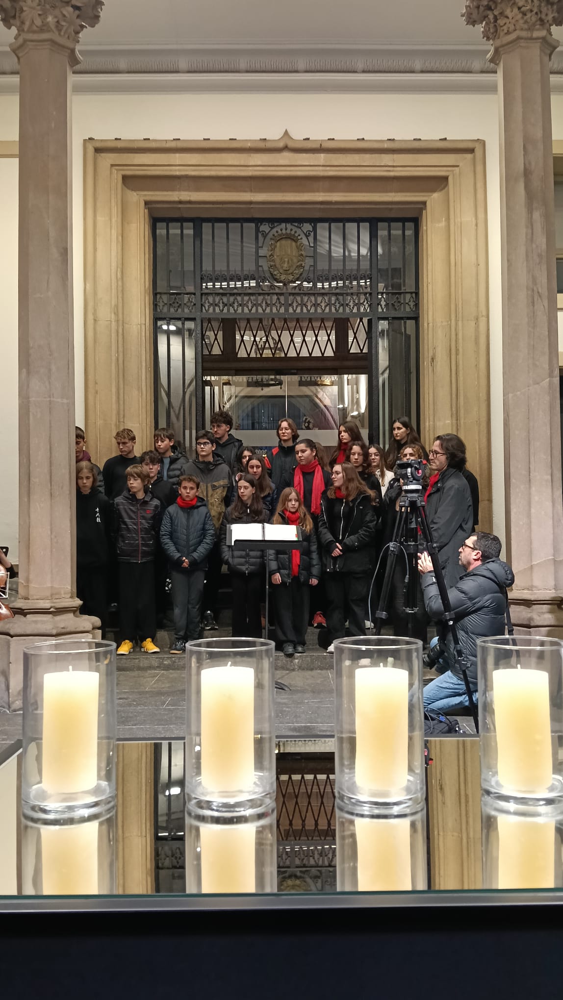 El nostre institut va ser representat per diferents membres de la comunitat educativa i, en especial, per alumnes de 4t d’ESO que van ser els encarregats d’encendre una de les espelmes en record de les persones mortes als camps nazis.