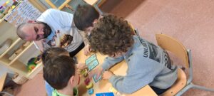 Els divendres, quinzenalment, els infants d’I5 i de 1r de primària es barregen per compartir una sessió de jocs de taula acompanyats de les famílies. Es tracta d’una experiència molt enriquidora i, a més, serveix per treballar aspectes com el seguiment d’unes normes, el fet de compartir, l’aprenentatge entre etapes diferents, els conceptes matemàtics, entre altres aspectes.