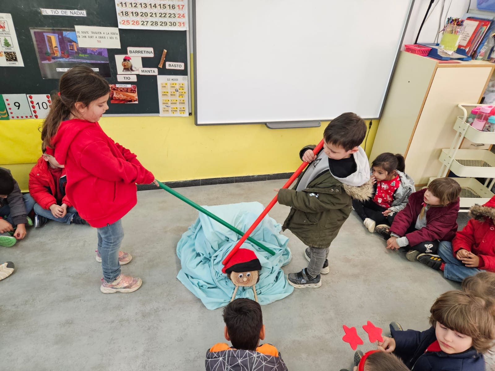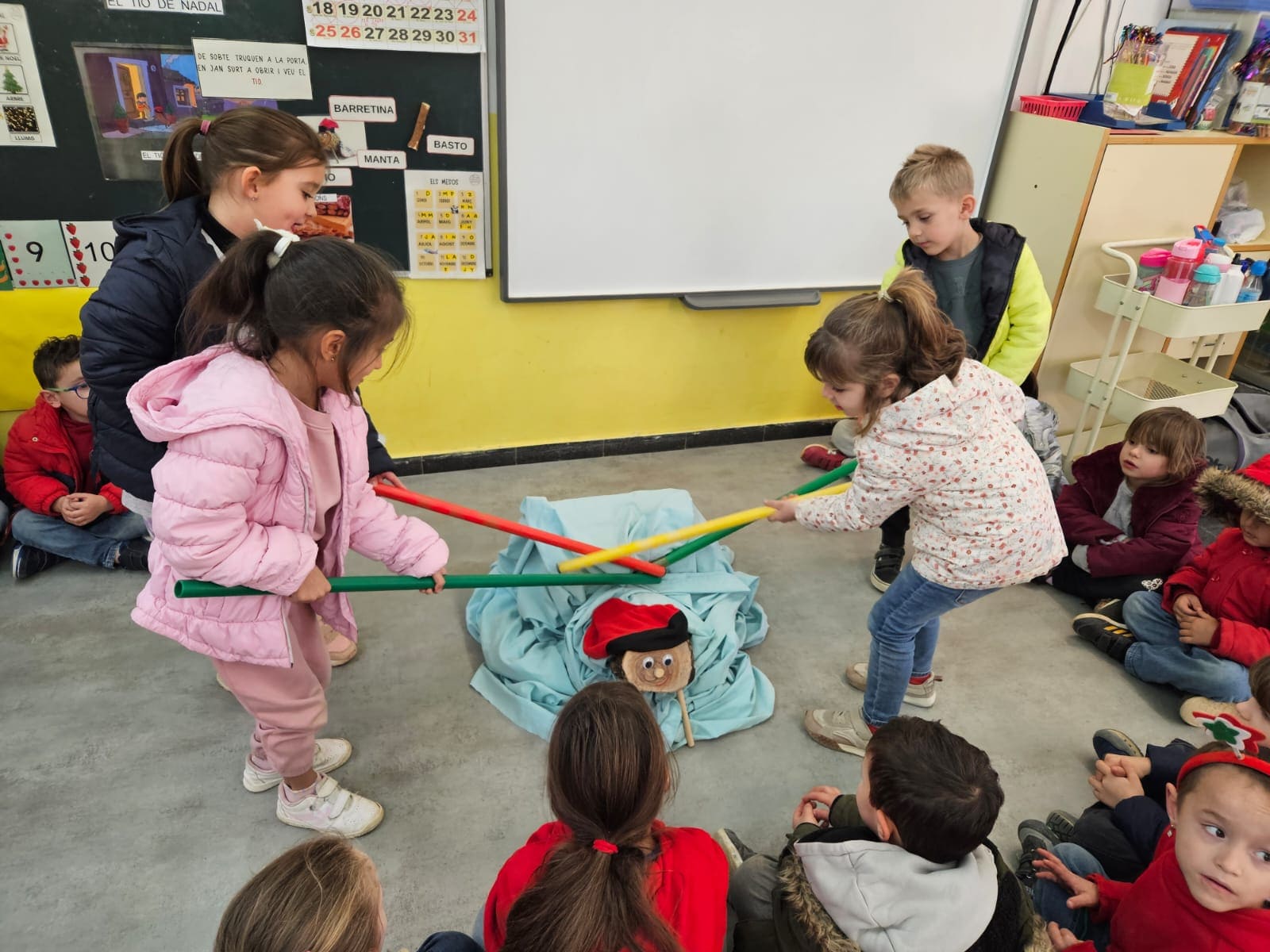 Amb l’arribada del tió es desperta la il·lusió de tot infantil i comença el compte enrere per fer-lo cagar. Els dies han passat i les nenes i nens han estat molt predisposats per atendre les seves necessitats. Finalment, arriba el gran dia on piquem, cantem i es respira la màgia.