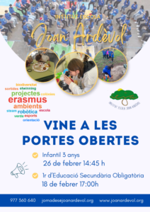 Voleu conèixer l’institut escola i com és el nostre dia a dia? Les Jornades de Portes Obertes es realitzaran els dies: