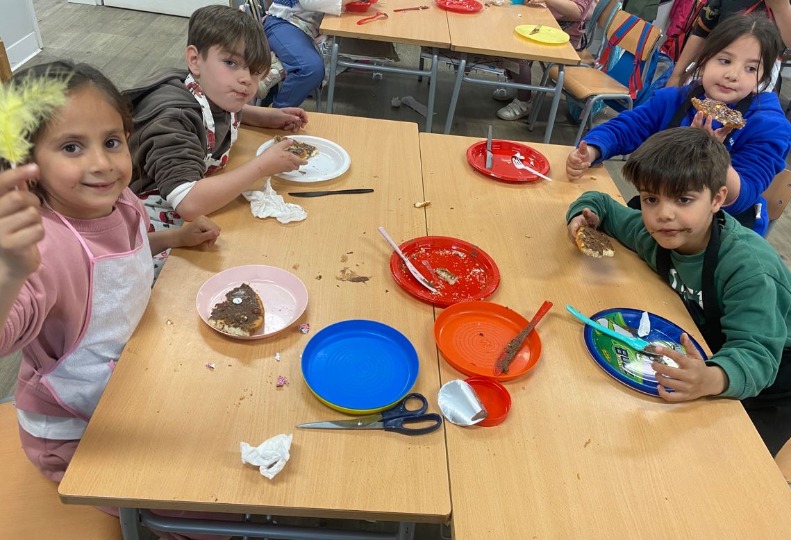 Aquesta última setmana abans de Setmana Santa, els nens i nenes de Cicle Inicial hem fet la tradicional mona de Pasqua elaborada i berenada pels alumnes.