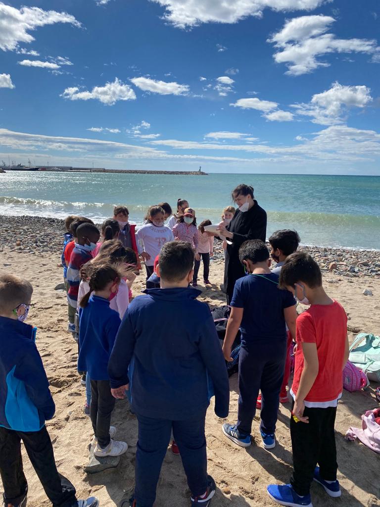 Aquest missatge estava escrit pel pirata Barba-roja, que el van abandonar. Ell volia recuperar els seus objectes personals i el vam ajudar a trobar-los per la platja. Vam trobar una pistola, una espasa, una bossa amb joies, pedres amb una bandera de Turquia, un rellotge de sorra…També van conèixer la història d’unes pirates, la Maria i l’Anna , com es defensaven al mar i de què treballaven dins del vaixell.