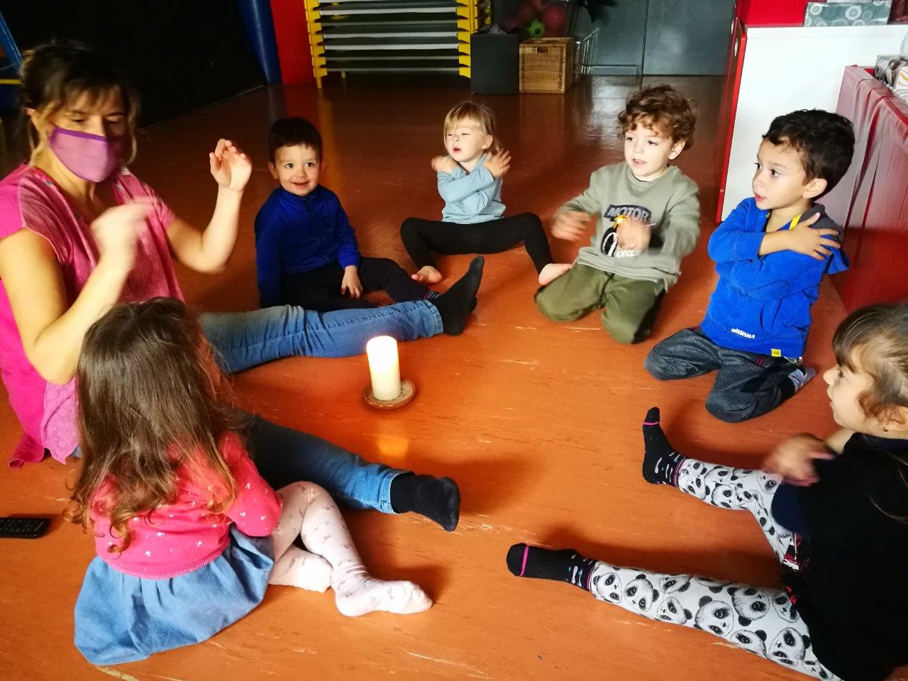 - Ritual d’entrada: on es fomenten hàbits com l’espera, l’escolta, l’atenció… I a més ens preparem per l’acció. Arribem a la porta de la sala, seiem, ens treiem les sabates i si cal, els mitjons també. Percebre amb tota la planta del peu és una font de plaer i contacte. Aprenem a regular els nostres impulsos i emocions, despertem el desig de l’infant…