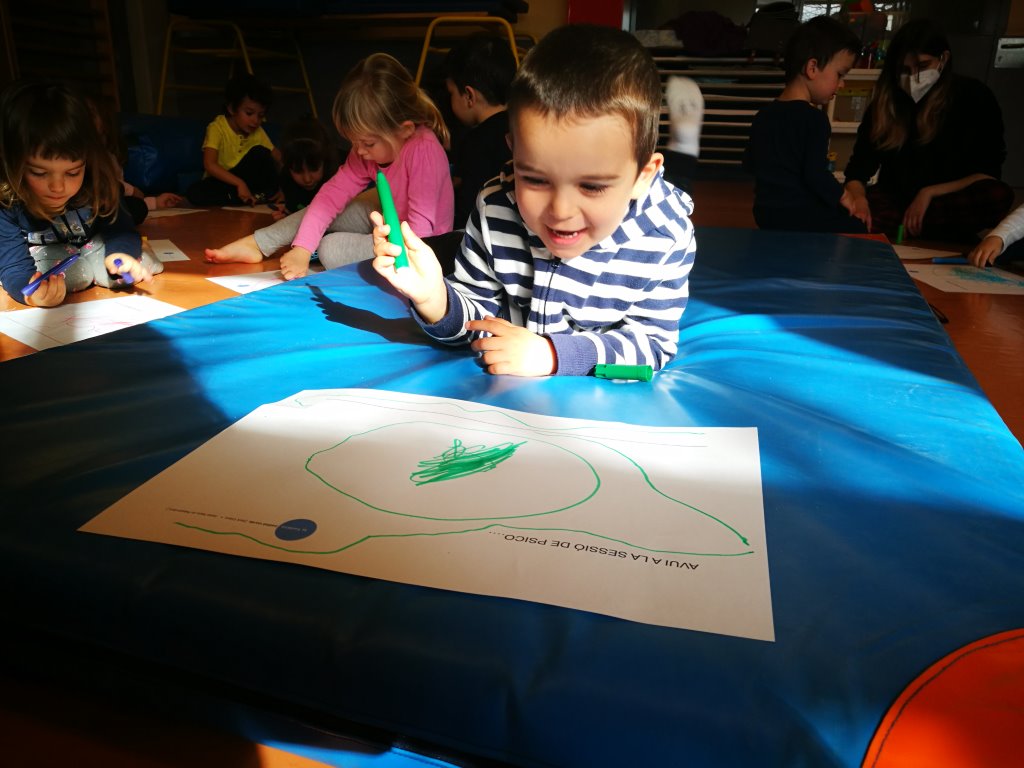 I hem donat pas també al darrer pas de la sessió amb una estona de relaxació per integrar tota l’acció corporal, a través de visualitzacions guiades amb carícies suaus i amoroses o bé hem començat a representar a través del dibuix allò que hem jugat durant tota la sessió…