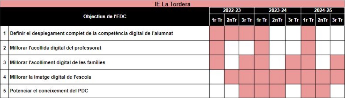 Amb el propòsit que les noves tecnologies esdevinguin una eina real d’aprenentatge i comunicació al nostre centre i tenint en compte la normativa i documentació presentada anteriorment, ens plantegen els següents objectius per als pròxims tres cursos: