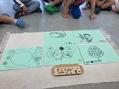 Dilluns al matí vam rebre la carta dins d’una ampolla de vidre d’en Pol i la Laia els quals ens demanaven ajuda per descobrir quin era aquell objecte que els havia arribat al seu vaixell (unes pinyes). Durant una estona vam estar observant-les amb les lupes, les vam comparar amb la nostra balança i vam veure que dintre tenien “moltes boletes” (pinyons), que estaven “molt durs” i que “costava d’obrir les seves fulles”. Per poder explicar-ho vam fer un dibuix de les troballes i li vam posar dins de la caixa del tresor dels nostres amics donant resposta així a la seva pregunta.