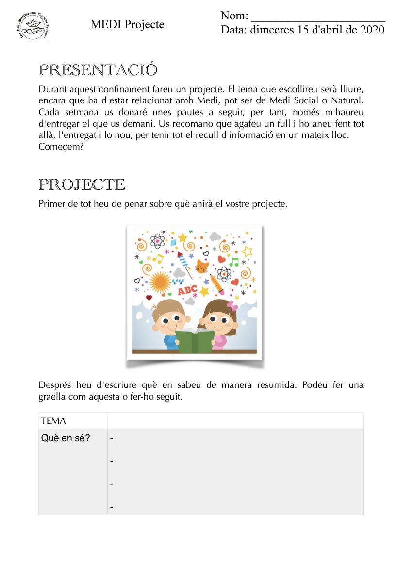 MEDI, 5è DIMECRES 22 D’ABRIL DE 2020 DIMECRES 15 D’ABRIL DE 2020 SEMPRE PODEU FER… MEDI SOCIAL MEDI NATURAL JUGUEM?