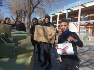 Aquesta representació venia a ser una metàfora de totes les guerres que tenim obertes avui dia en el nostre món, i els alumnes de 1r d’ESO ho volien fer visible i alhora denunciar la absurditat de la guerra davant de totes les famílies, professors i resta d’alumnat del centre.