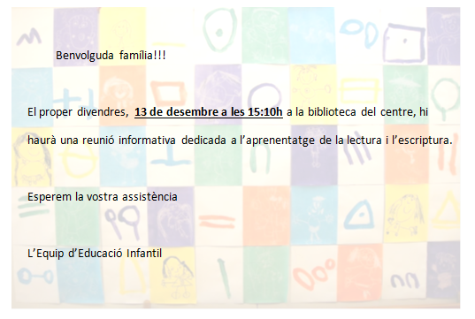 • Reunió informativa de l’aprenentatge a la lectoescriptura
