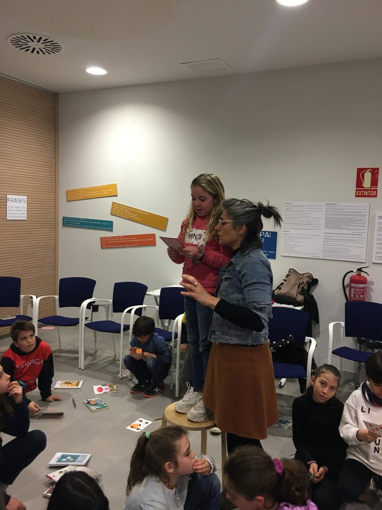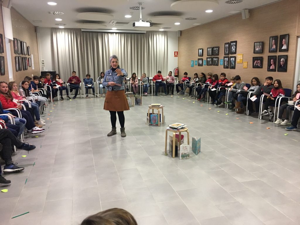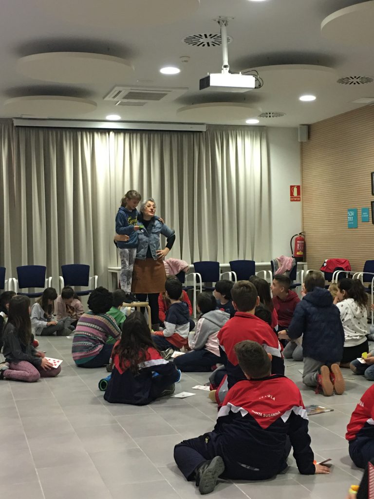 La setmana passada els grups de 4t de primària de l’IE Montagut van anar al Club de Lectura de la Biblioteca Vall d’Alfatà, juntament amb el 4t curs de l’Escola Santa Susanna. La Mon Mas va dinamitzar la sessió que girava entorn del llibre Un petó de mandarina de l’Eulàlia Canal i que, prèviament, totes i tots havíem llegit a l’aula. Vam gaudir molt de la lectura; ens parlava d’amor, d’amistat, de les relacions amb els pares, de la música, de la cooperació… i la Mon Mas ens va fer passar una molt bona estona comentant-nos el llibre.