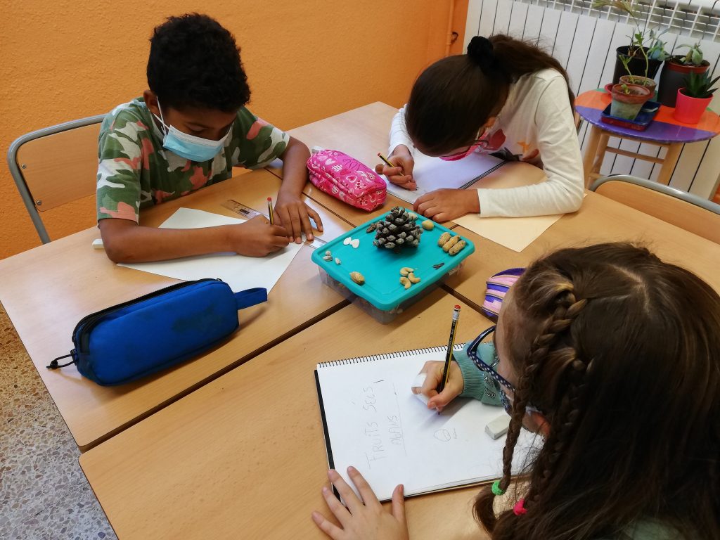 L’altre dia la classe del Plàncton va dibuixar amb els ulls. Vam estar treballant els fruits secs, tots els seus detalls, des de la closca més externa a la més interna. Utilitzant lupes vam poder veure i analitzar els petits detalls d’aquests fruits secs que ens poden aportar molta energia en el nostre dia a dia. Seguim el consell que ens va donar la Noemi, es dibuixa amb els ulls, a partir de l’observació i la coneixença d’allò que volem dibuixar. Us animem a observar amb detall aquests fruits secs i a tastar-los!