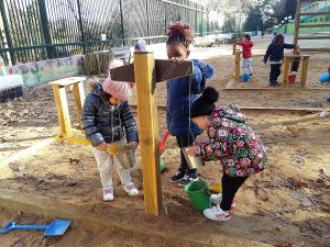 Aquests dies les nenes i nens d’infantil hem pogut estrenar i jugar amb les noves instal·lacions que hi ha a la zona del sorral. Que divertit es jugar a posar, treure, omplir, fer caure la sorra per un forat…