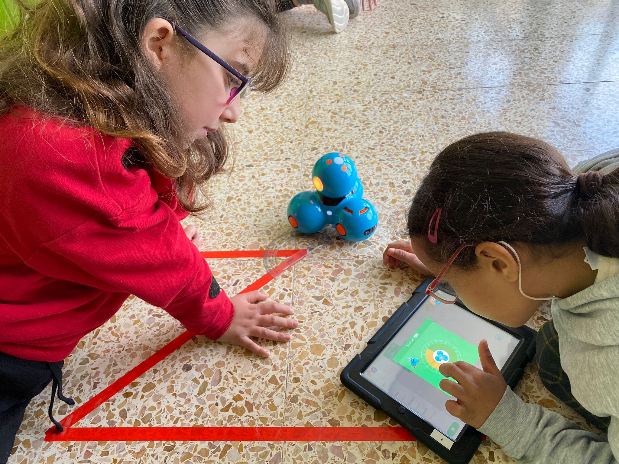 Durant el 1r i 2n trimestre hem tingut els robots Dash & Dot a l’escola. Durant les sessions de tallers matemàtics del cicle mitjà i cicle superior hem practicat la programació per blocs gràcies a aquests robots tan simpàtics. Per poder crear les ordres per seguir els camins marcats a terra hem hagut de mesurar amb la cinta mètrica i hem hagut de mesurar els graus amb el transportador d’angles. Ens hem convertit en expertes movent al Dash!!