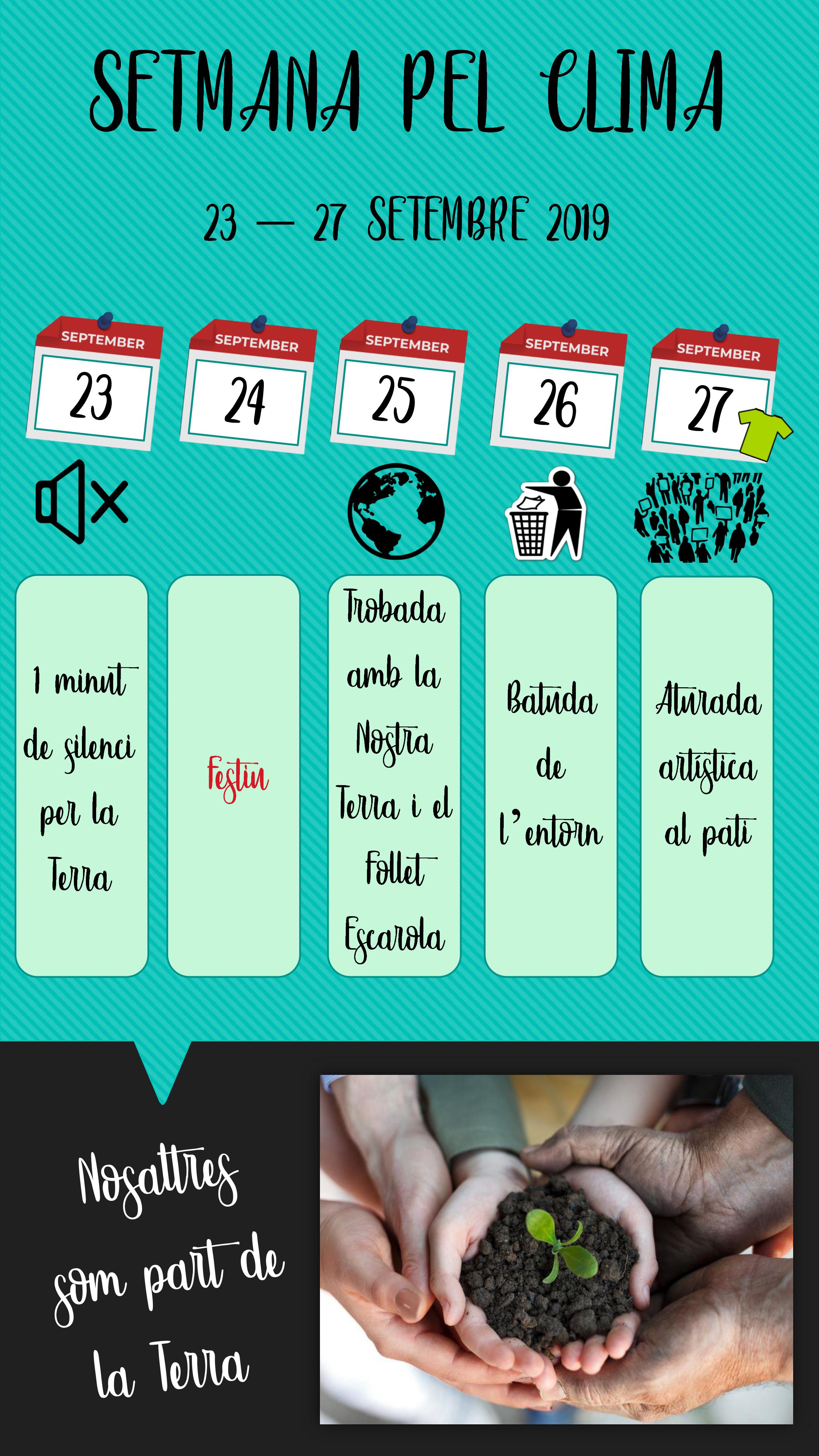 Setmana pel clima!! Feu un comentari / Per admin / 23 de setembre de 2019 / Escoles Sostenibles General Infantil Portada Primària / canvi climàtic, childrens for future, emergència climàtica, vaga pel clima