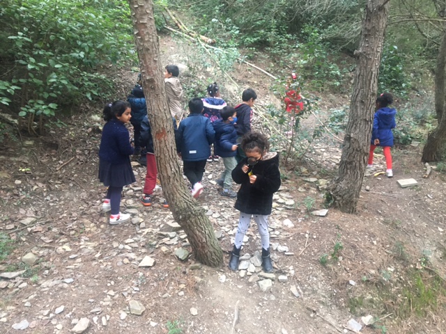 Hem sortit al bosc i ens hem emportat les lupes, a veure si trobàvem insectes… no hem tingut gaire sort, però si hem caçat alguns bolets,  i altres fruits del bosc que després a l’aula hem pogut observar millor.