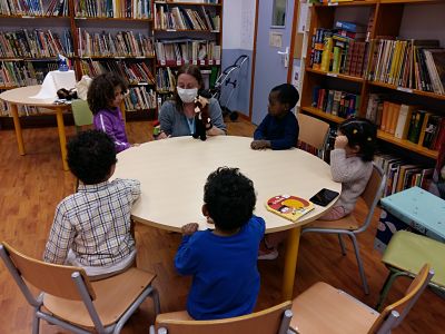 Aquesta setmana hem visitat la biblioteca Ulisses, la biblioteca de l’escola. Hem escoltat el conte d’en Patufet amb titelles i hem cantat la cançó que l’acompanya: “Patim, patam, patum, homes i dones del cap dret. Patim, patam, patum no trepitgeu el Patufet”.