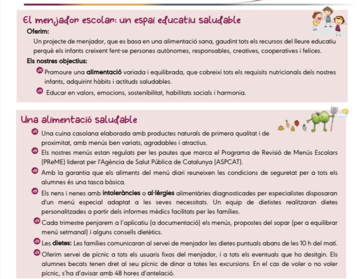 El menjador és una aula més de l’escola, una oportunitat diària de treballar les competències del saber estar i les habilitats que requereix alimentar-se, i la cultura de la nutrició. Tot plegat, un llarg i bonic camí.