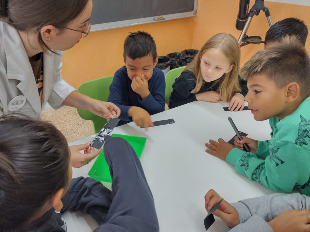 El dia 11 d’octubre van venir el Joan i la Laura a Cicle Mitjà a ensenyar-nos el que havien après sobre nanotecnologia i vam poder observar amb microscopi diferents elements com seda, llana, números, fongs…També vam fer un punt de llibre amb una capa nano, imitant les ales d’una papallona. Per últim vam jugar a