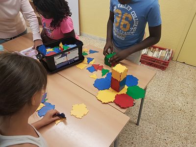 L’alumnat de 4t de primària fent una sessió de matemàtiques manipulatives de forma lúdica, tota una bona manera de transferir coneixements i adquirir-ne de nous mitjançant la experimentació. Aquí teniu un petit vídeo de la sessió,